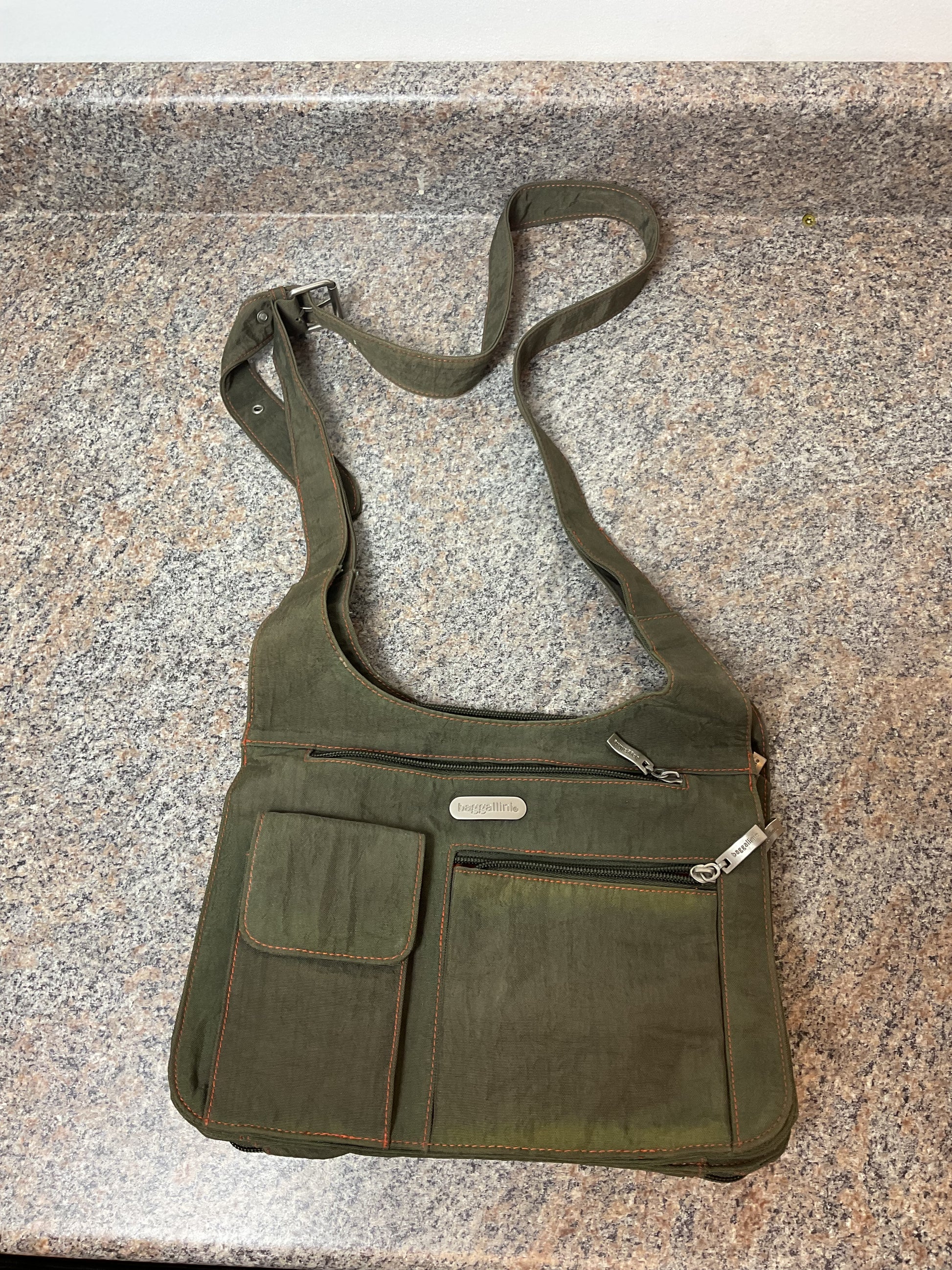 Baggallini Army Green Nylon Hobo Crossbody Shoulder Bag