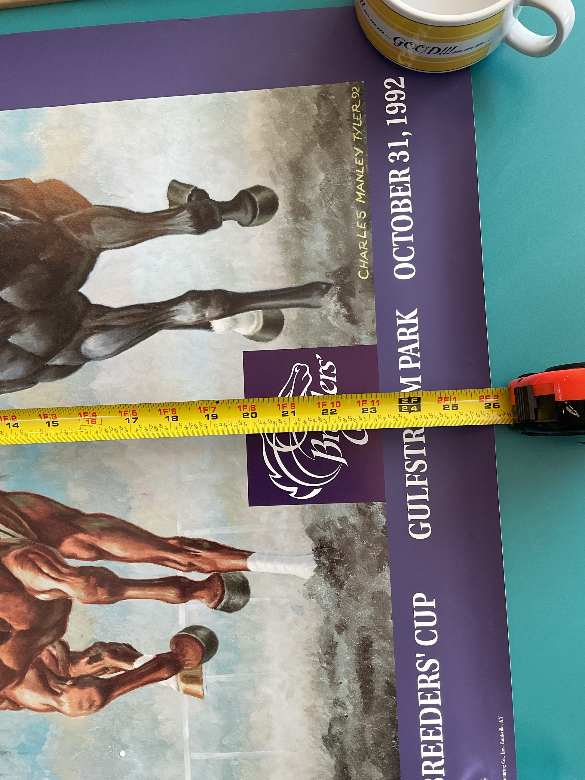Charles Manley Tyler designed this poster for the 1992 Breeder’s Cup. It measures 26” tall by 22” wide. Good condition.