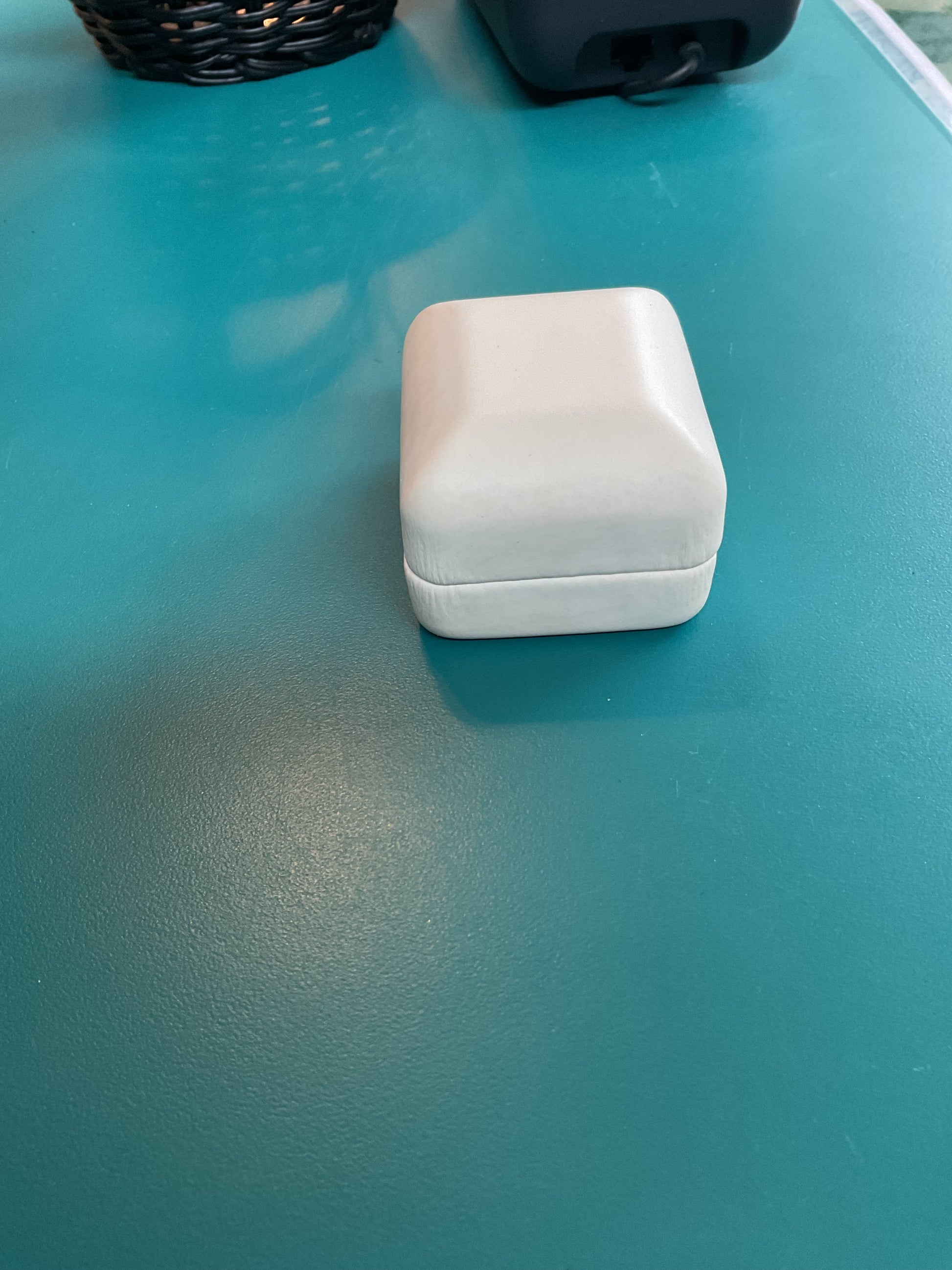 This metal ring has a classic brushed finish look. It is a size 10 ring.