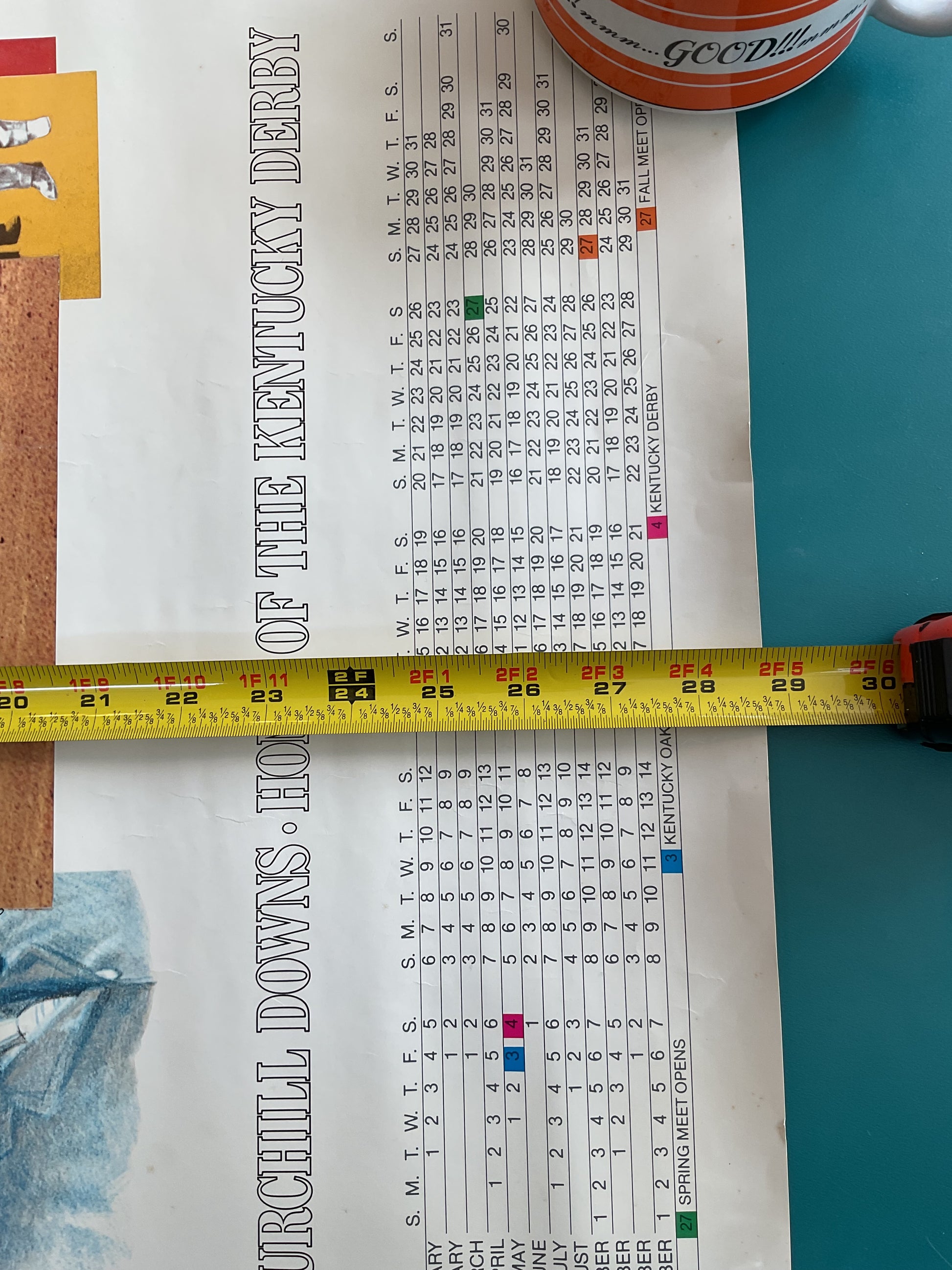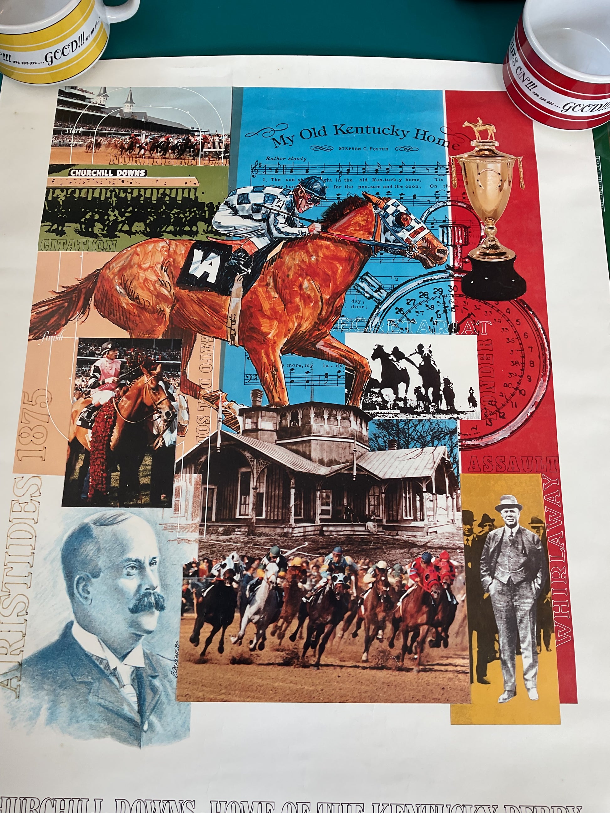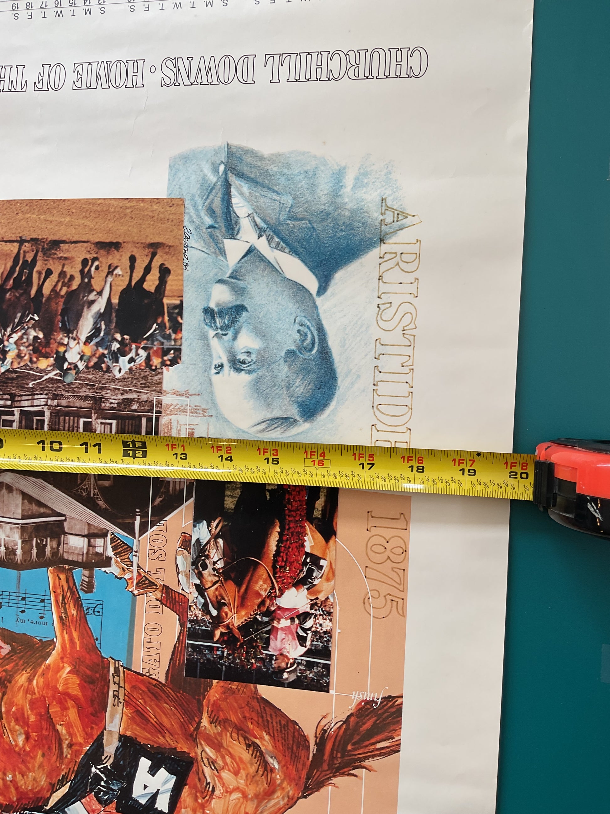 This poster was made to mark the important track days for Churchill Downs in 1985. It has a cool main design with a lower calendar section. It measures 29” tall by 20” wide.
