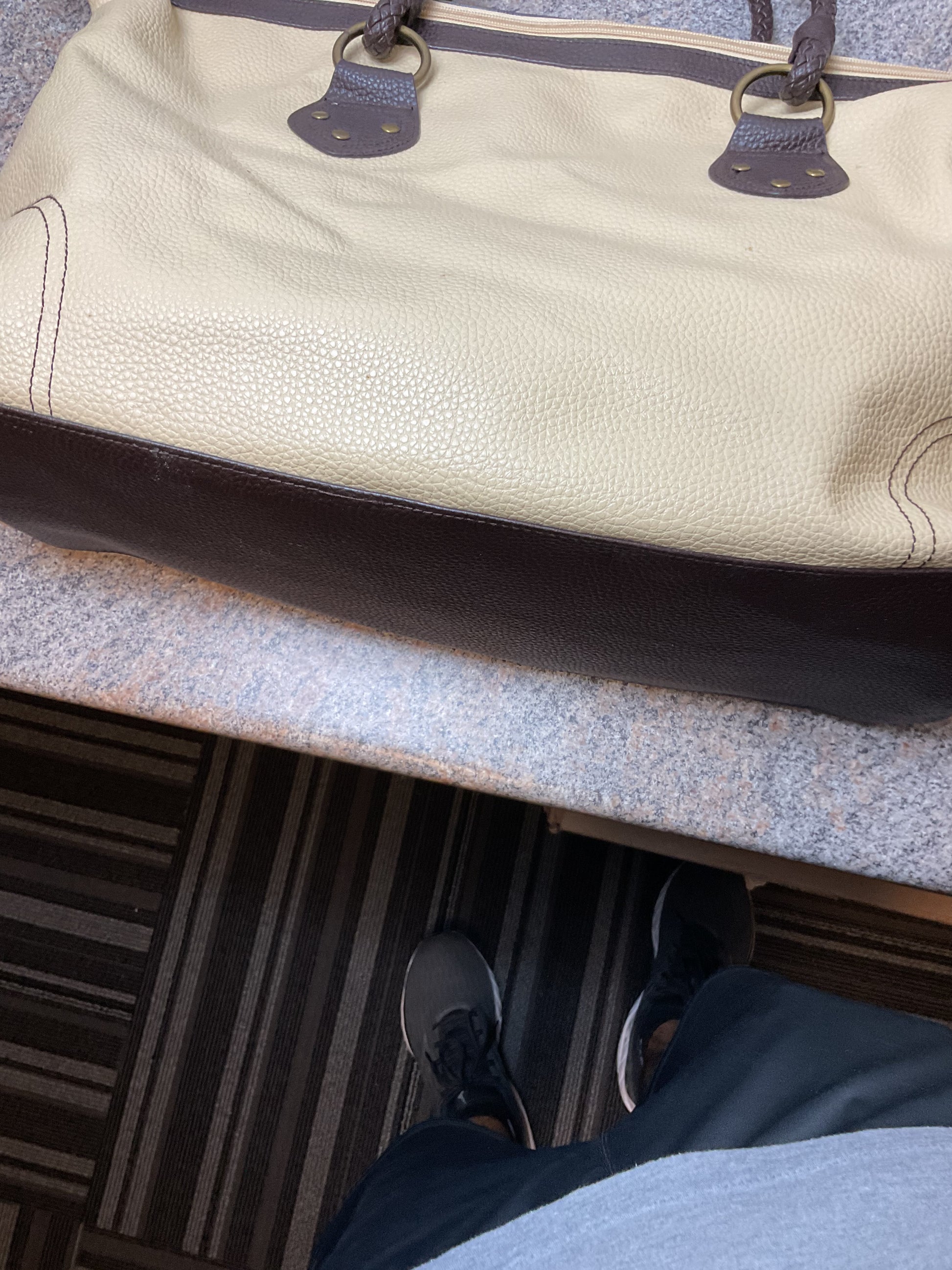 A large vintage Estee Lauder Bag that is big enough to haul around anything you could need.