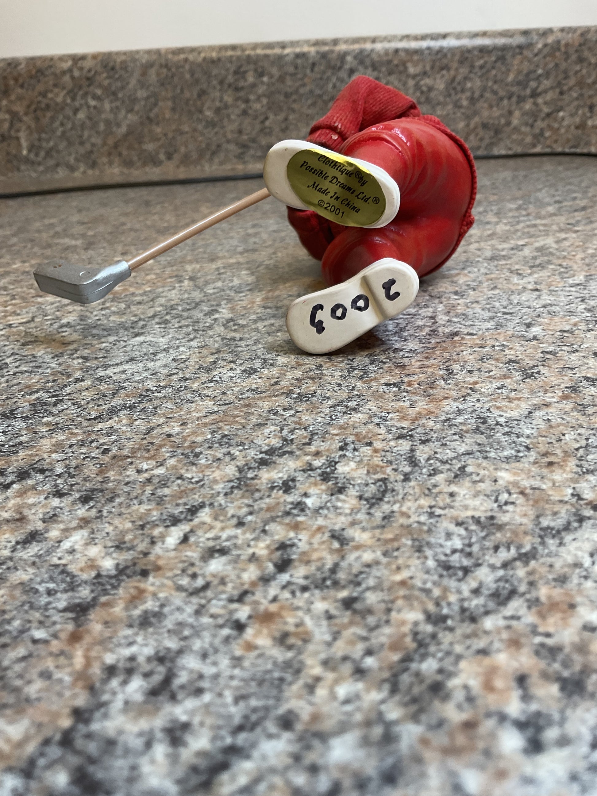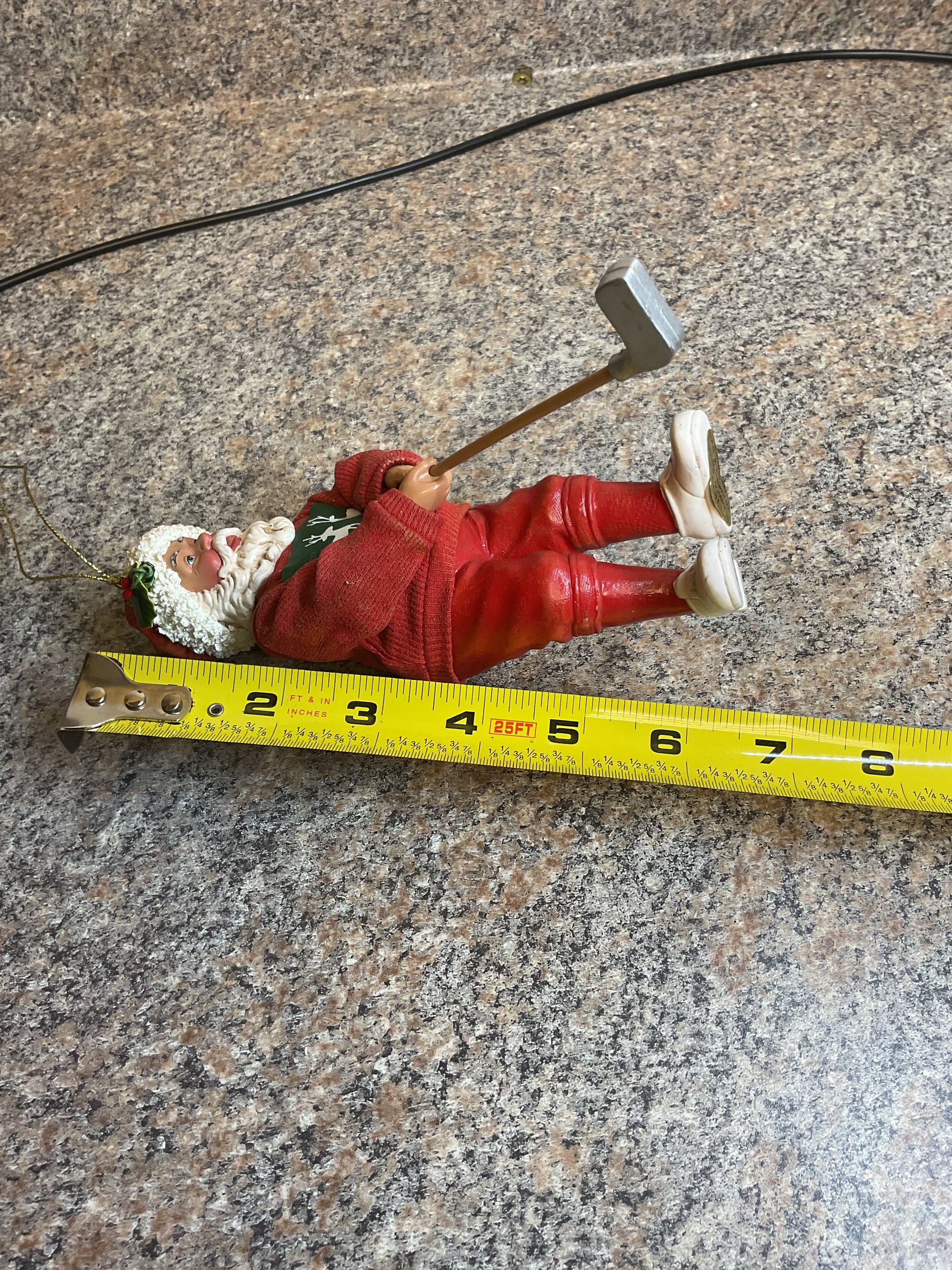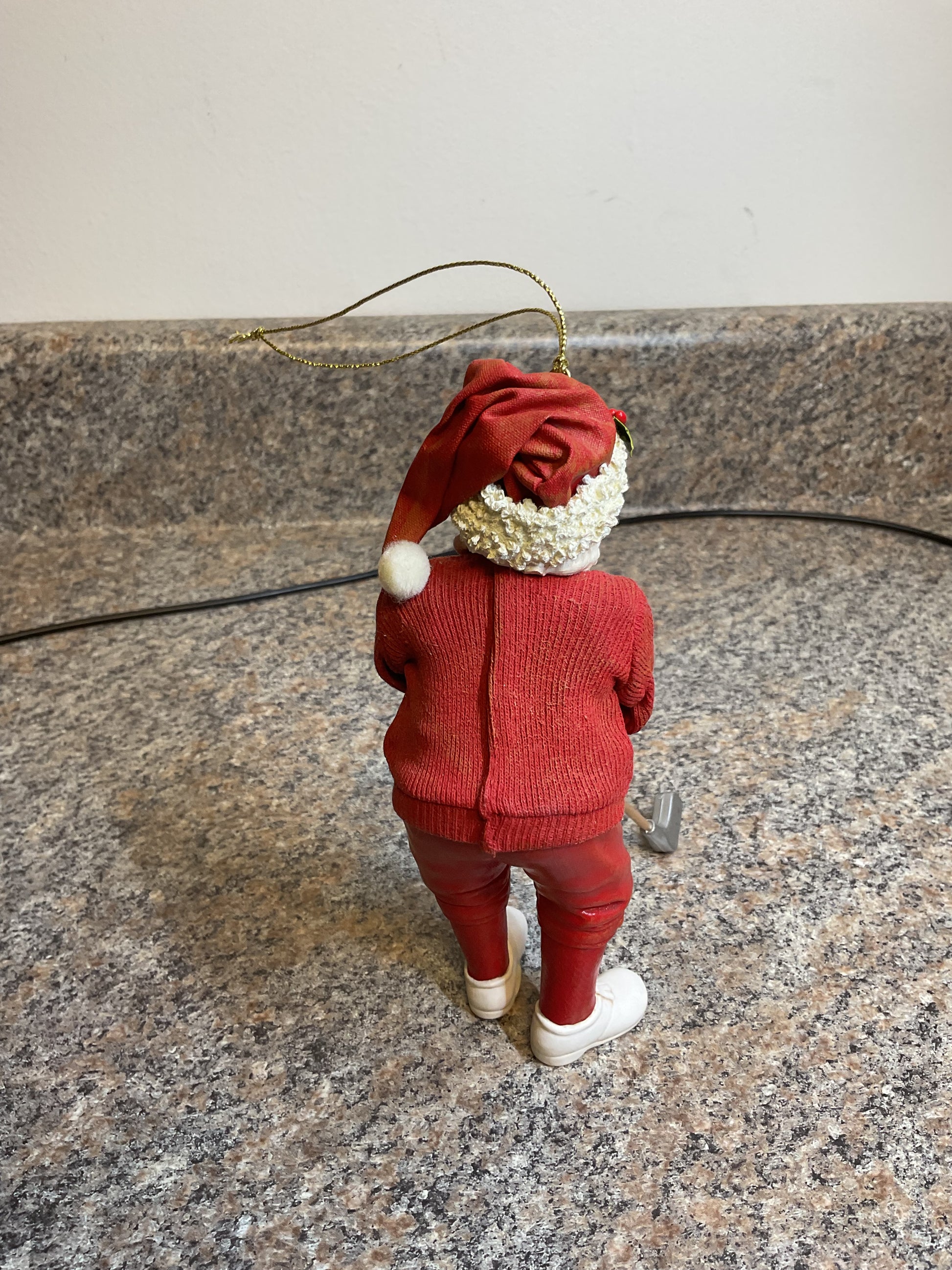 This fun Santa figurine is a perfect decoration for the holiday times. This golfing Santa is sure to bring a smile to your guests faces. Not sure what year it was made but it has 2003 written on foot in sharpie. Get yours now and bring some fun, holiday spirit to your house.