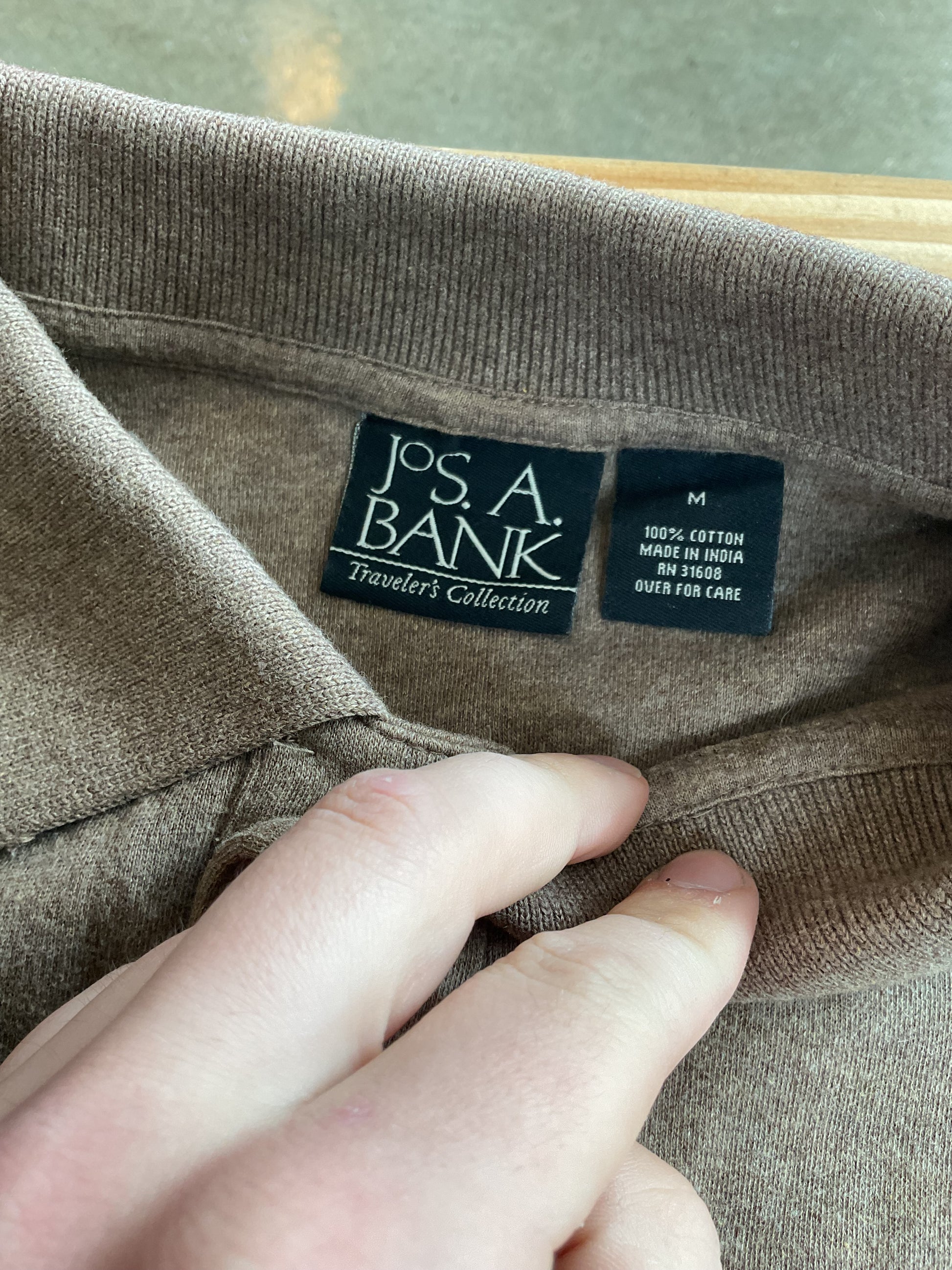 This 1/4 button, collared shirt from Jos. A. Bank is part of their Travelers Collection and is made of 100% Cotton. Nothing wrong with it, it is an extremely comfortable material that is perfect for dressing up or lounging around the house in.