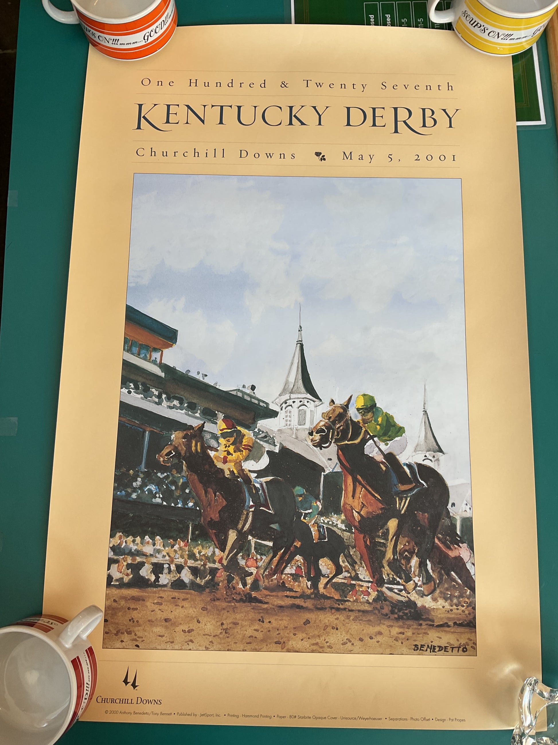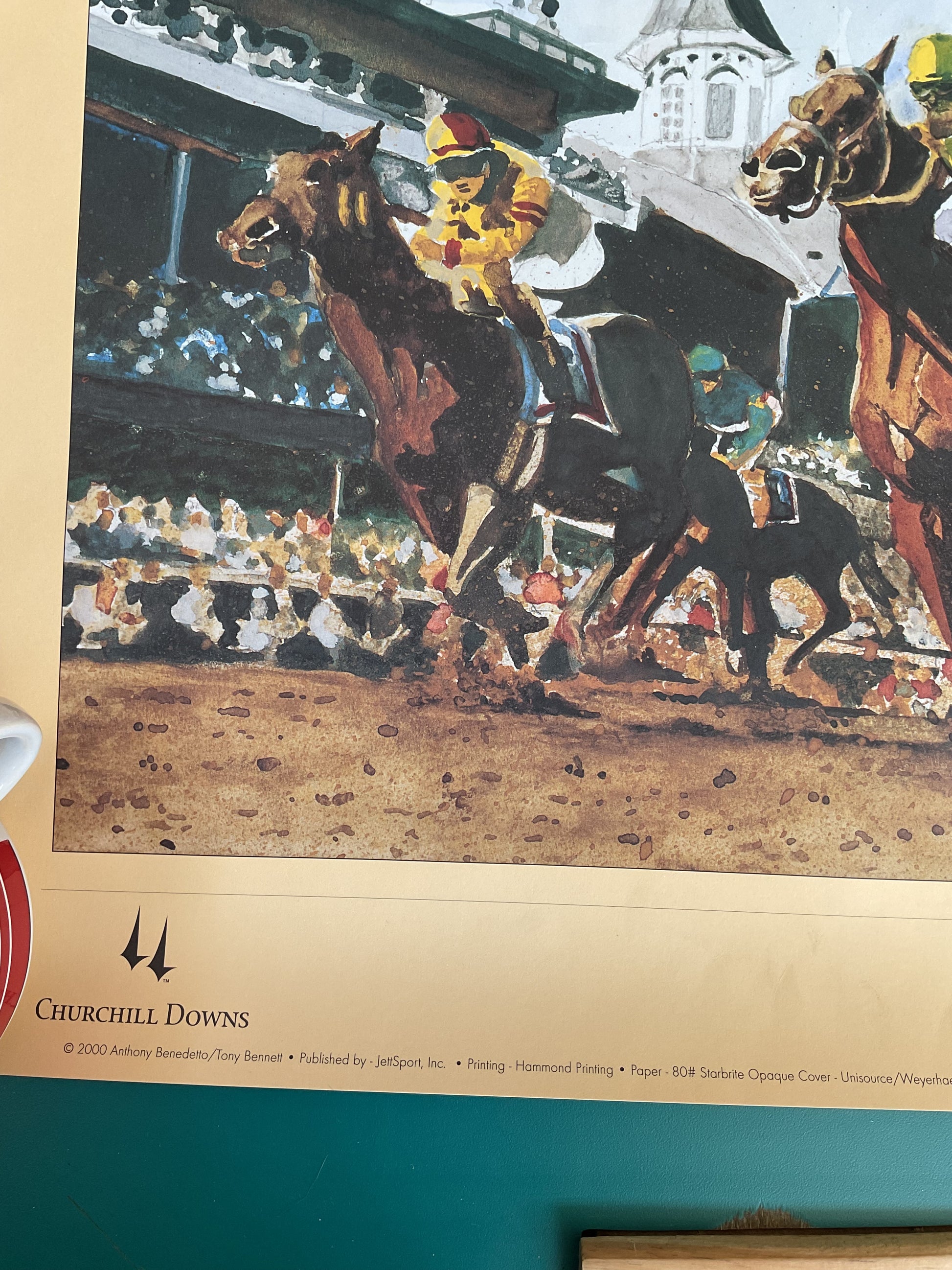This poster was created by Anthony Benedetto and Tony Bennett to commemorate the 127th running of the Kentucky Derby ran in 2001. It measures 29” long by 19” wide.