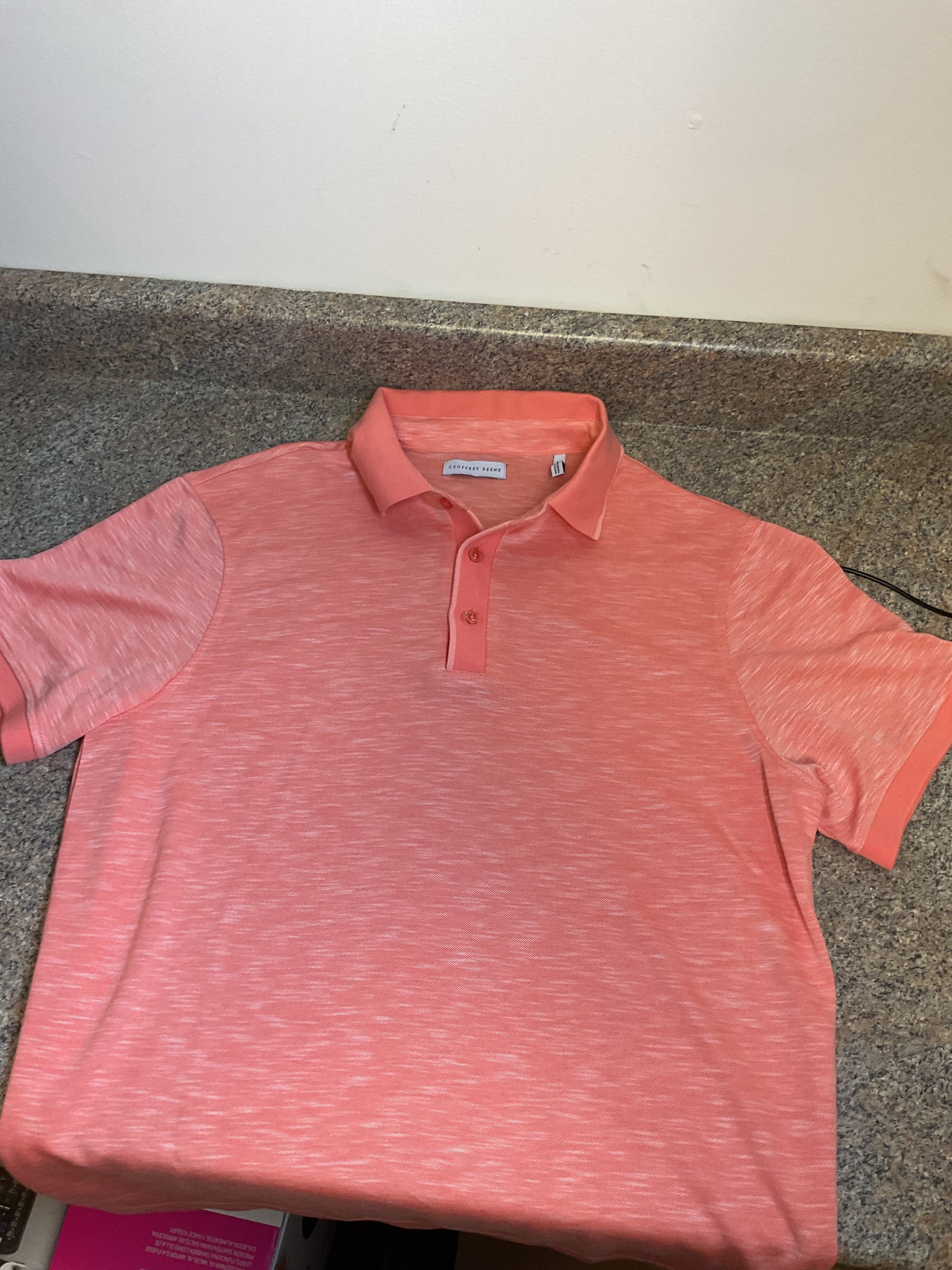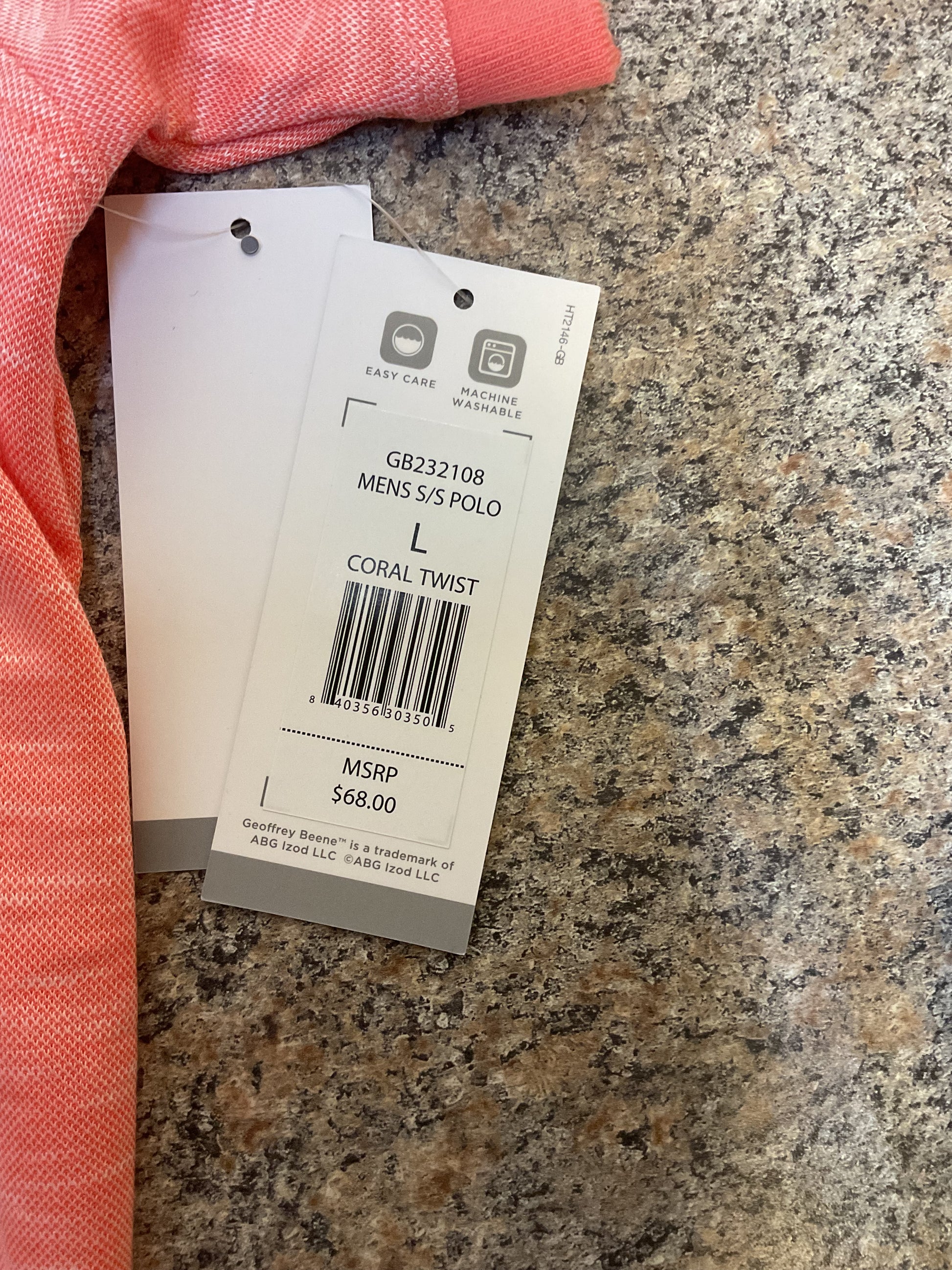 Very nice short sleeve Geoffrey Beene large coral men’s dri-fit polo shirt with tags