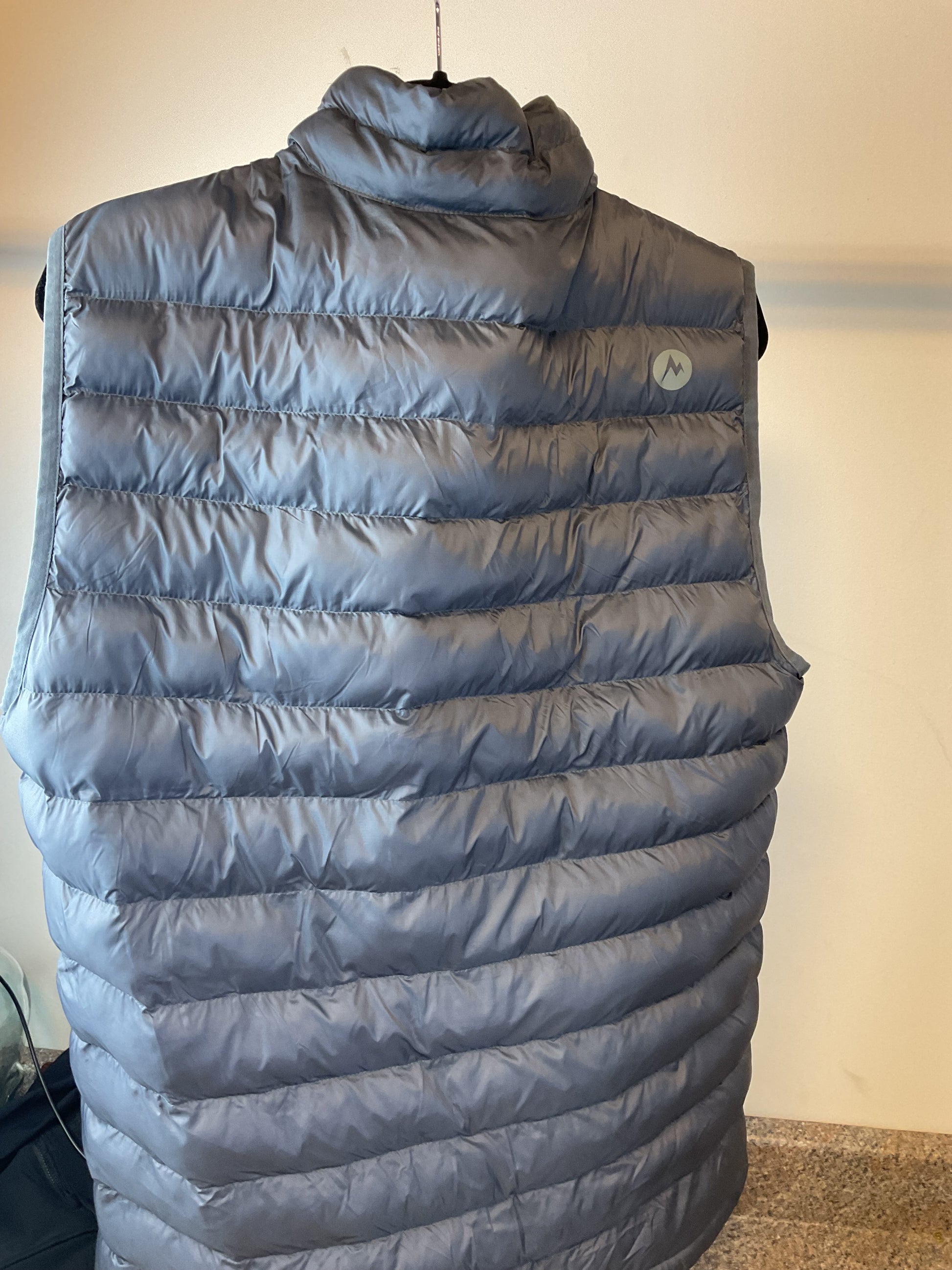 This Light Grey Marmot puffy vest is sure to keep you warm. Whether you are tailgating the game or picking pumpkins with the kids, this vest is sure to give you a stylish look while helping to keep you warm. Get yours now.