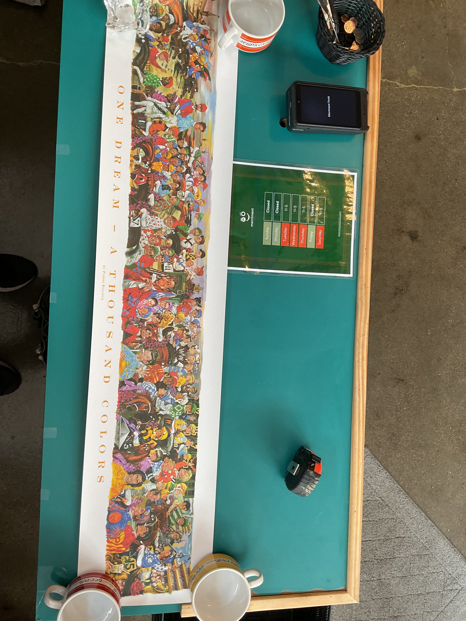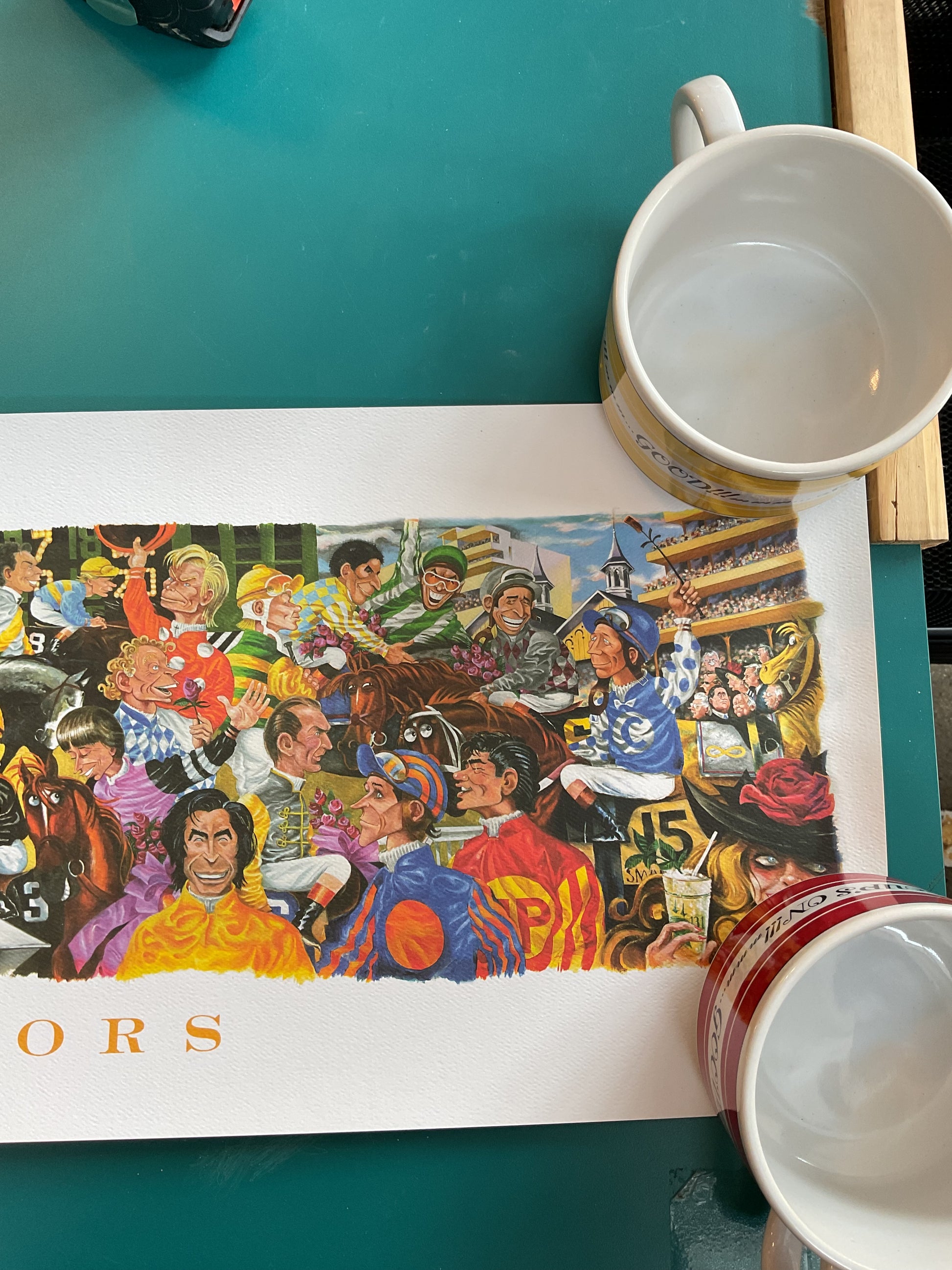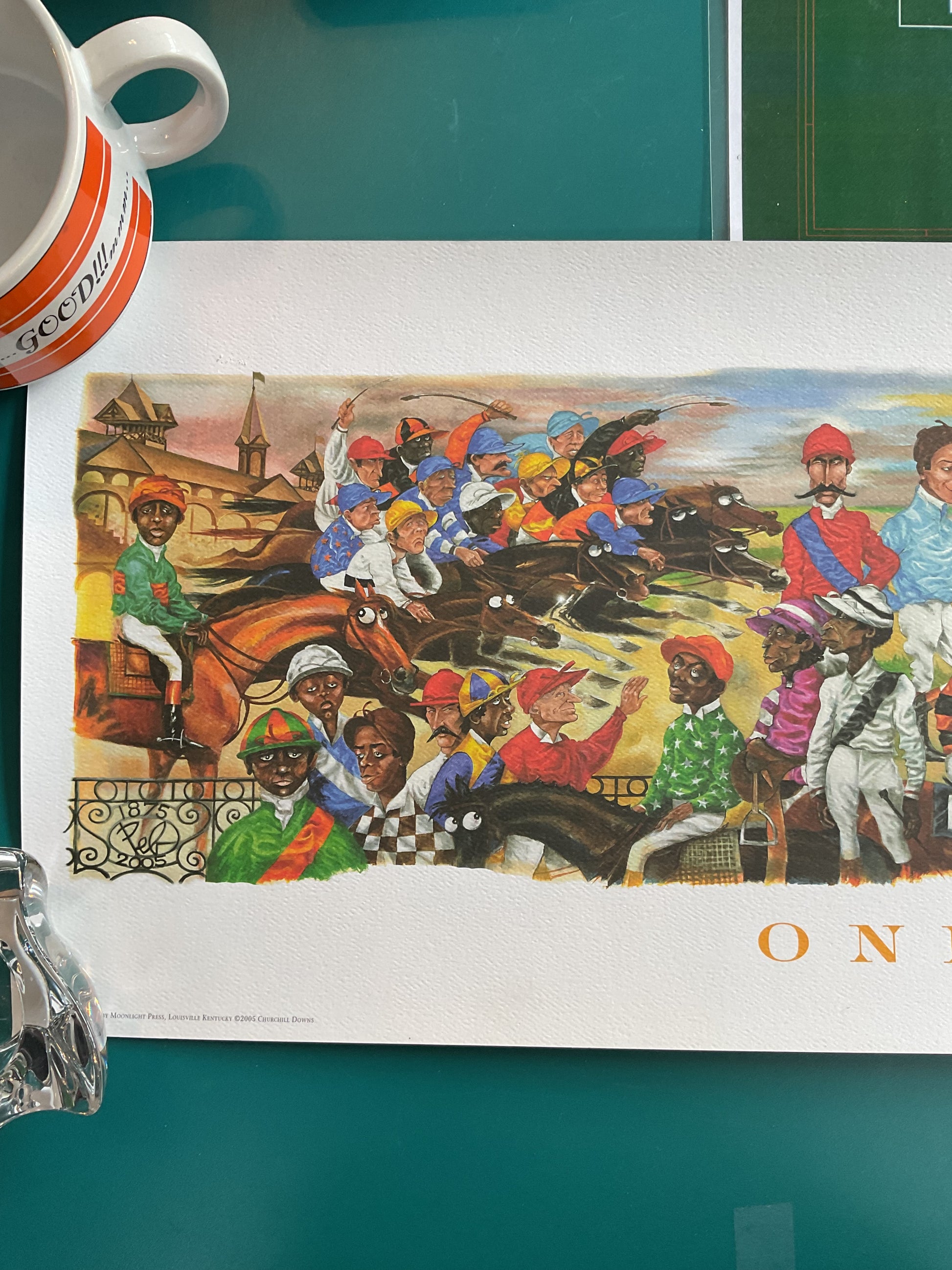 This mural was created by Pierre “Peb” Bellocq to commemorate the Kentucky Derby. This was published in 2005. It is an awesome piece with fun features and vibrant colors. It’s the perfect piece for a fan of Pierre’s work or for collectors of Derby memorabilia.