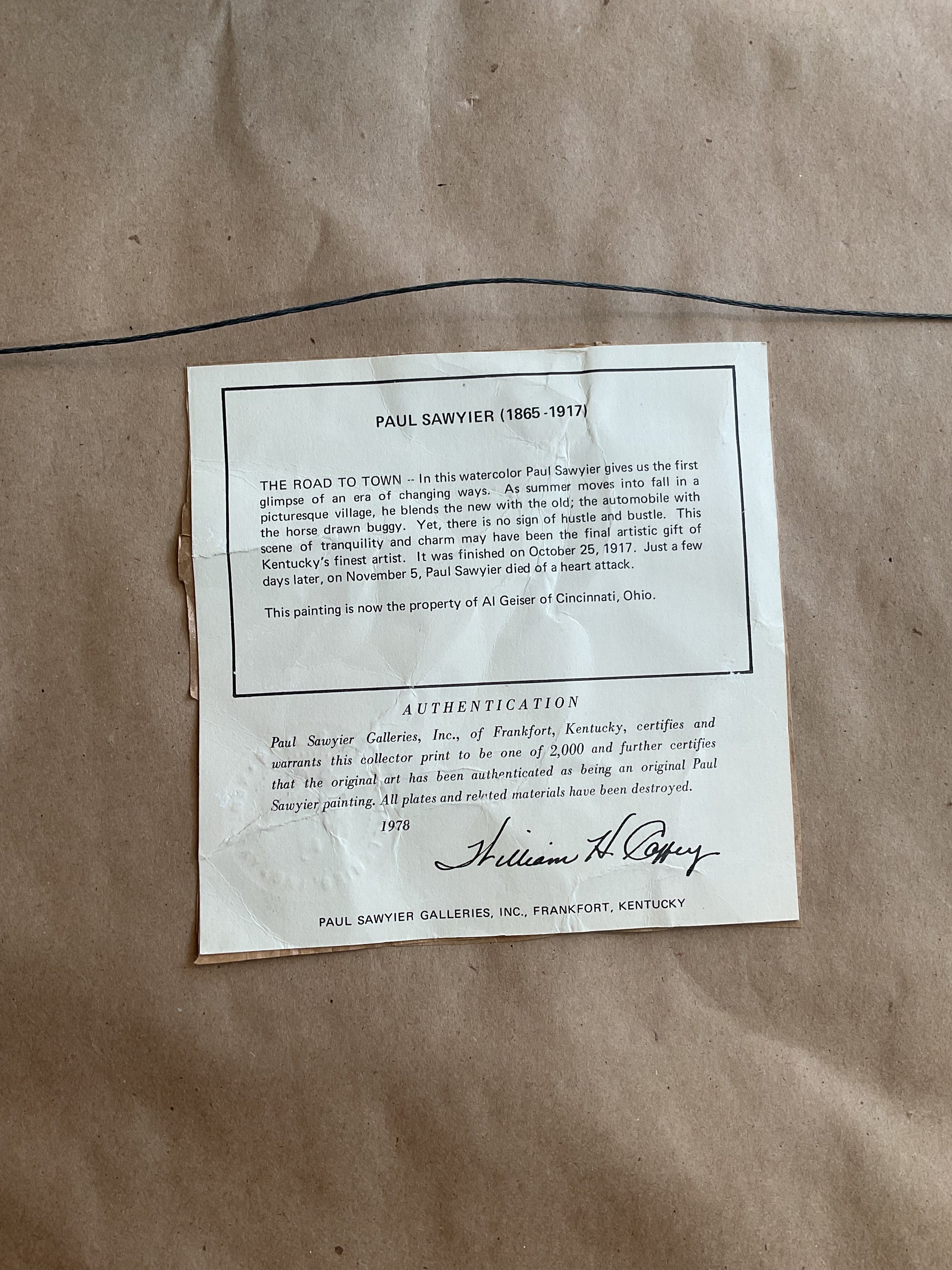 Paul Sawyer “The Road to Town” Authenticated Watercolor