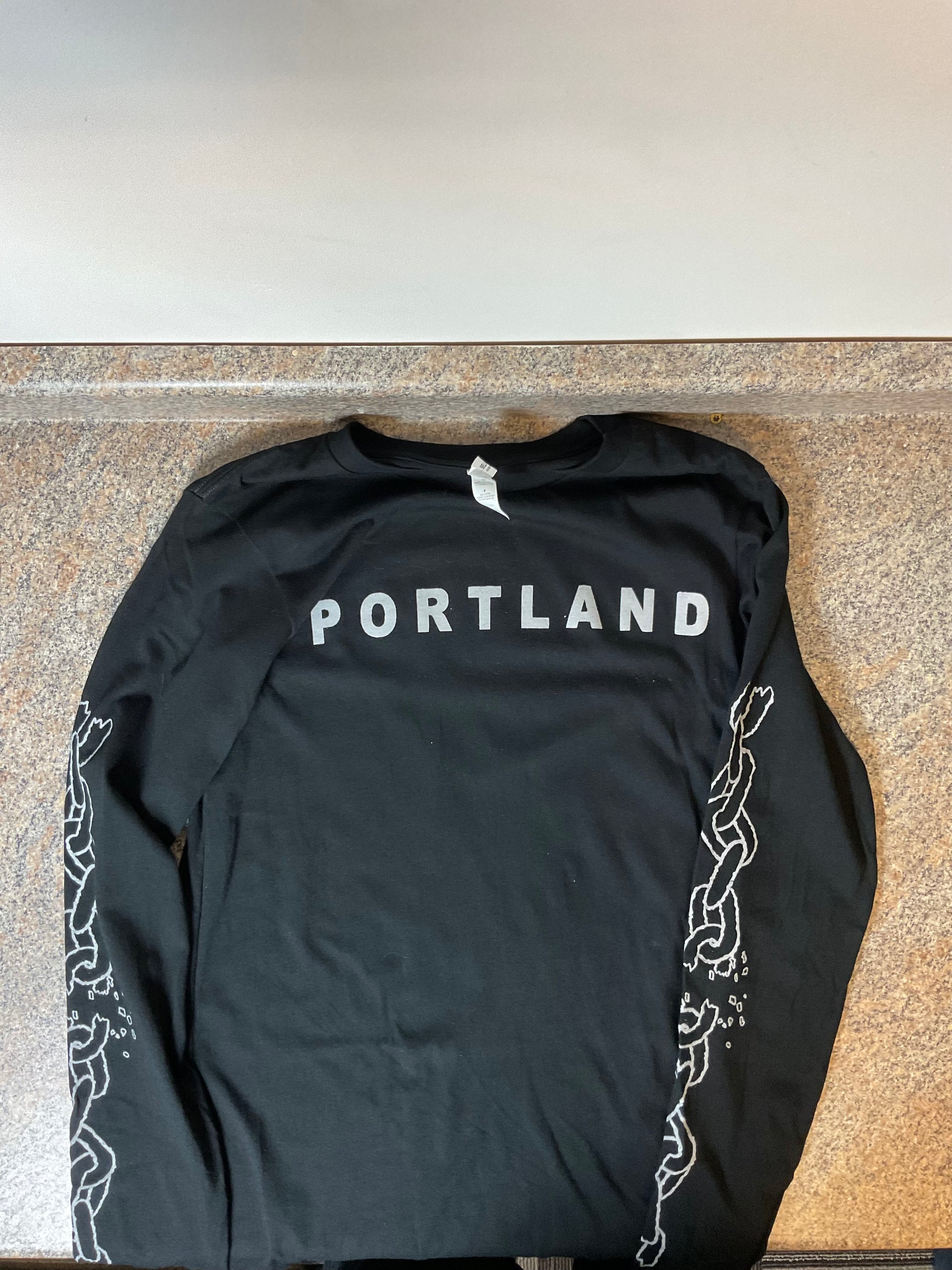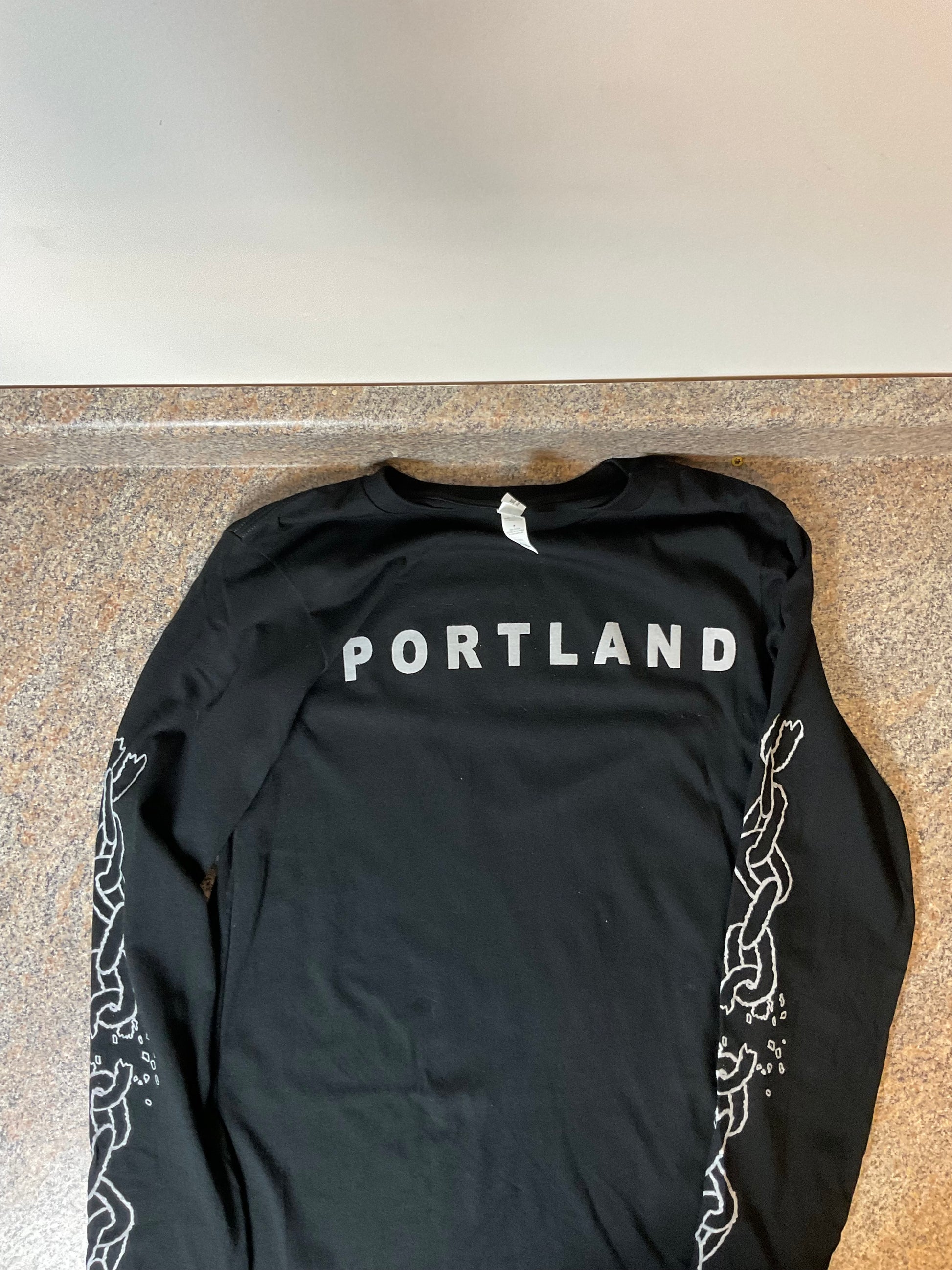 Longsleeve Shirt. Portland on the front, anchor on the back, and broken chains down the sleeves, can't get much more Portland than that.