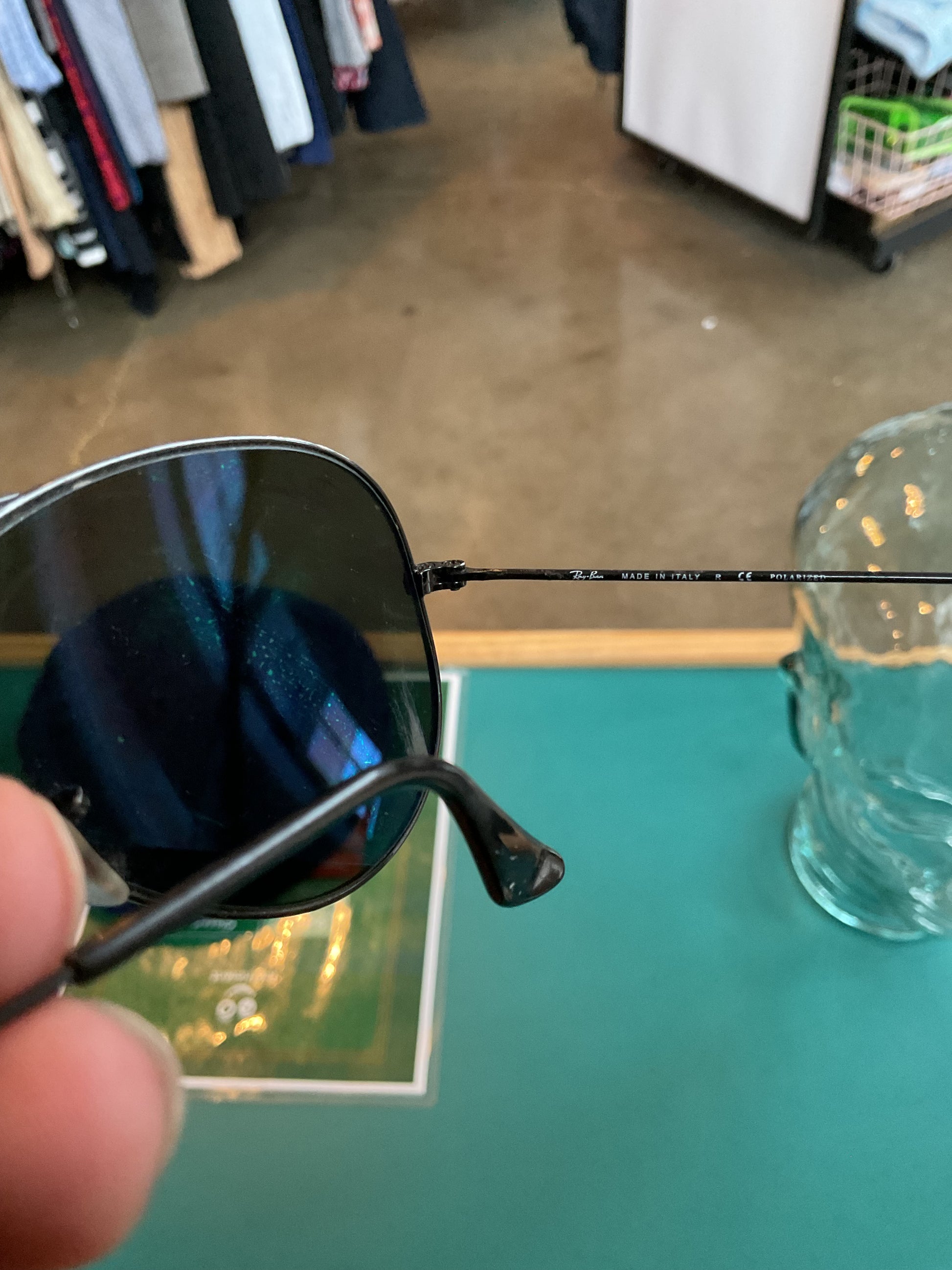 Ray-Ban P Aviator Sunglasses. These sunglasses are polarized to keep your eyes protected. Their classic style will keep you looking stylish throughout summer. Made in Italy with quality. One of the hinges on an arm feels a little loose but not noticeable when wearing.