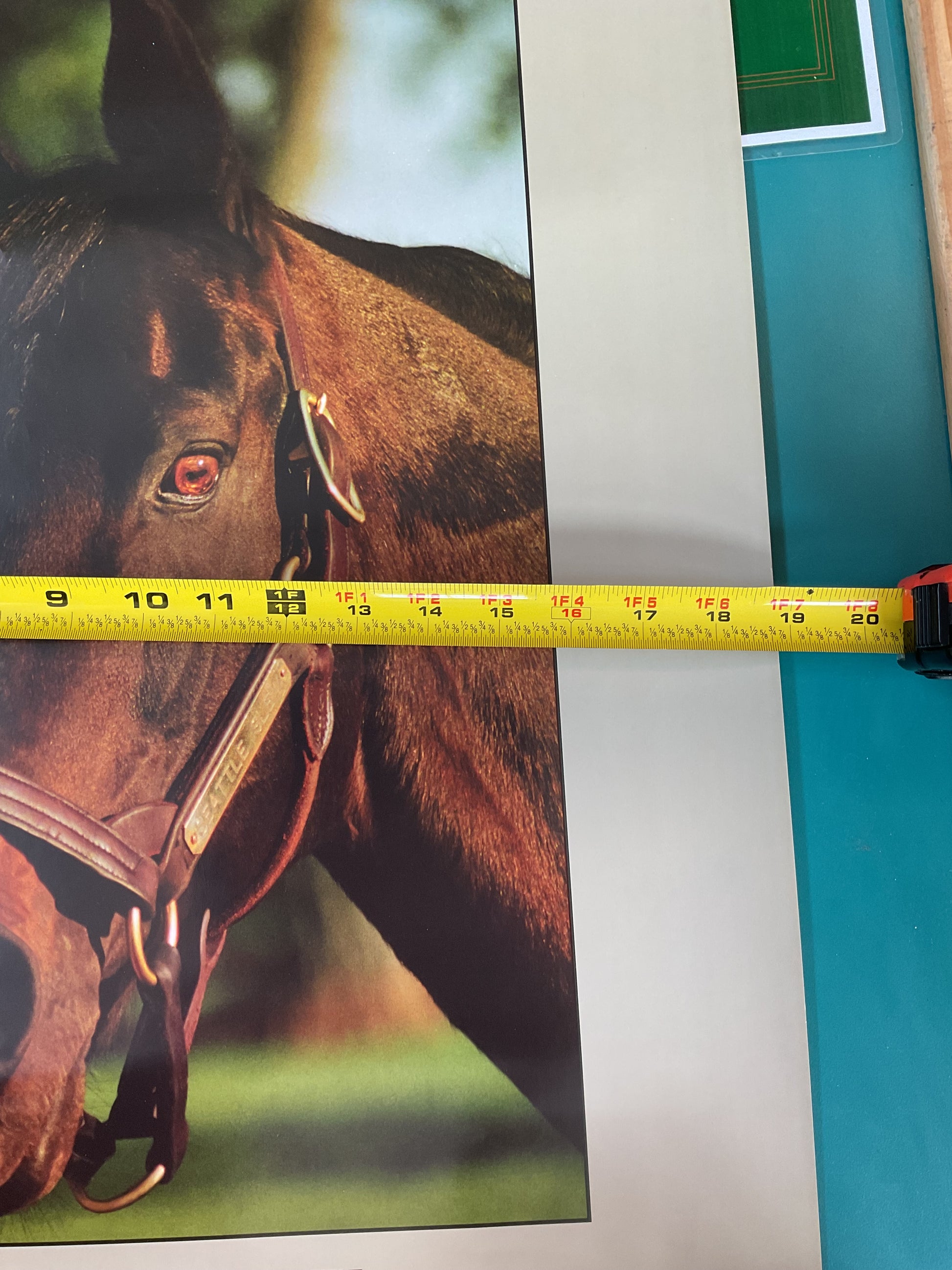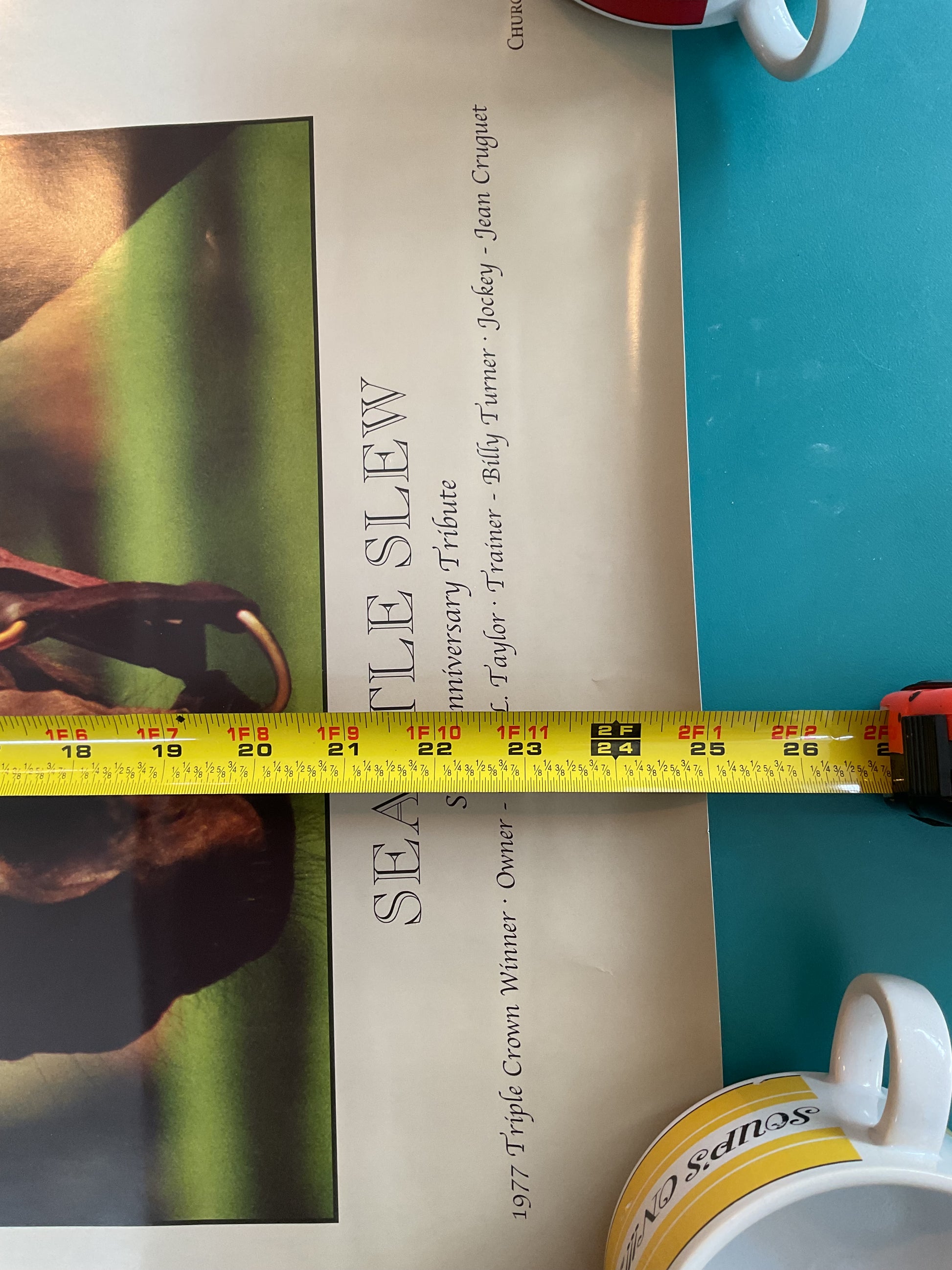 This poster was made on the 20th anniversary of Seattle Slew winning the Triple Crown. It was made in 1997. It measures 25” x 19”.
