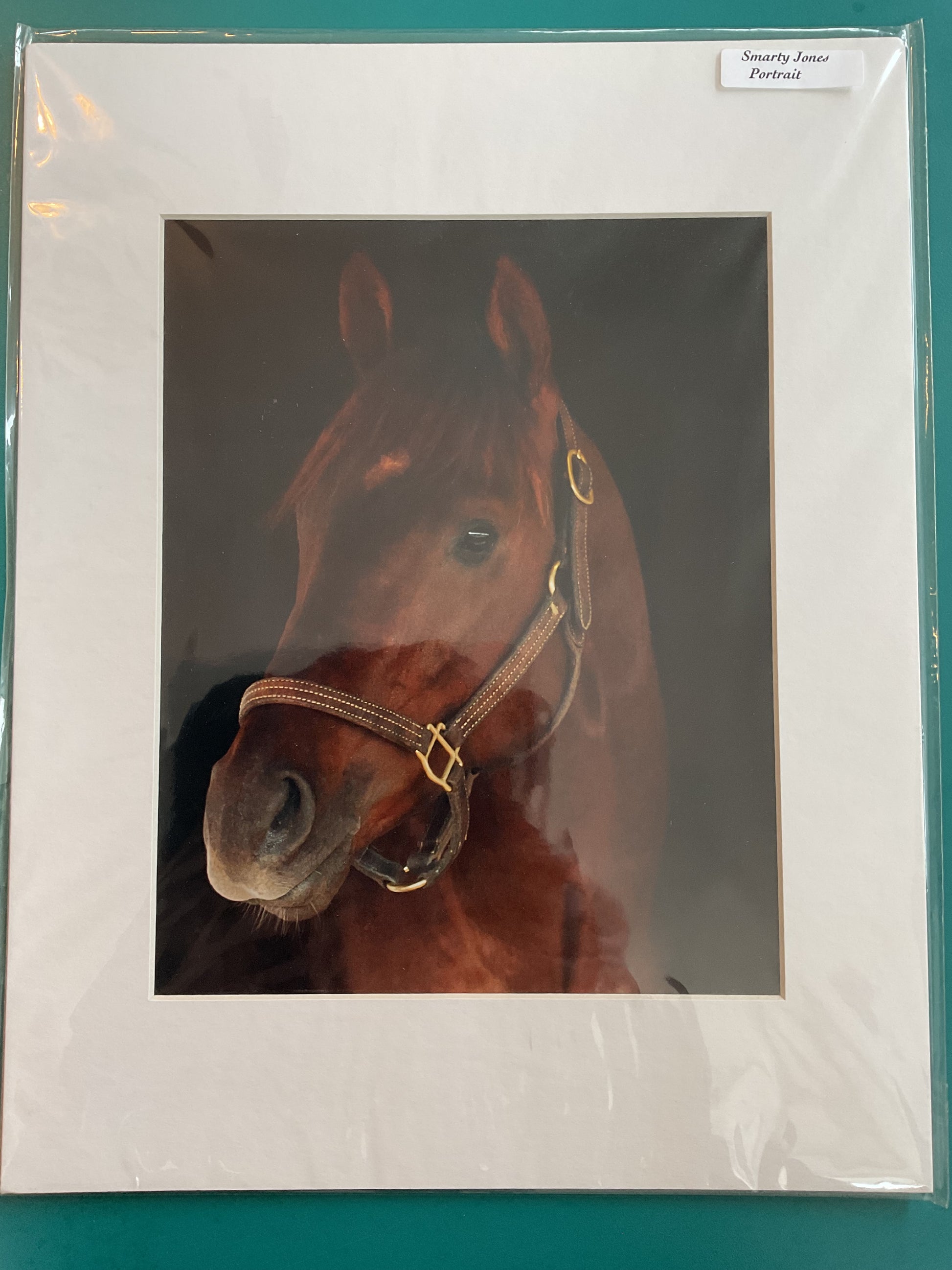 This is a portrait of the horse Smarty Jones who won the 2004 Kentucky Derby and Preakness. He was favored as the first Triple Crown winner since Affirmed in 1978. The portrait is new and measures 14” tall by 11” wide.
