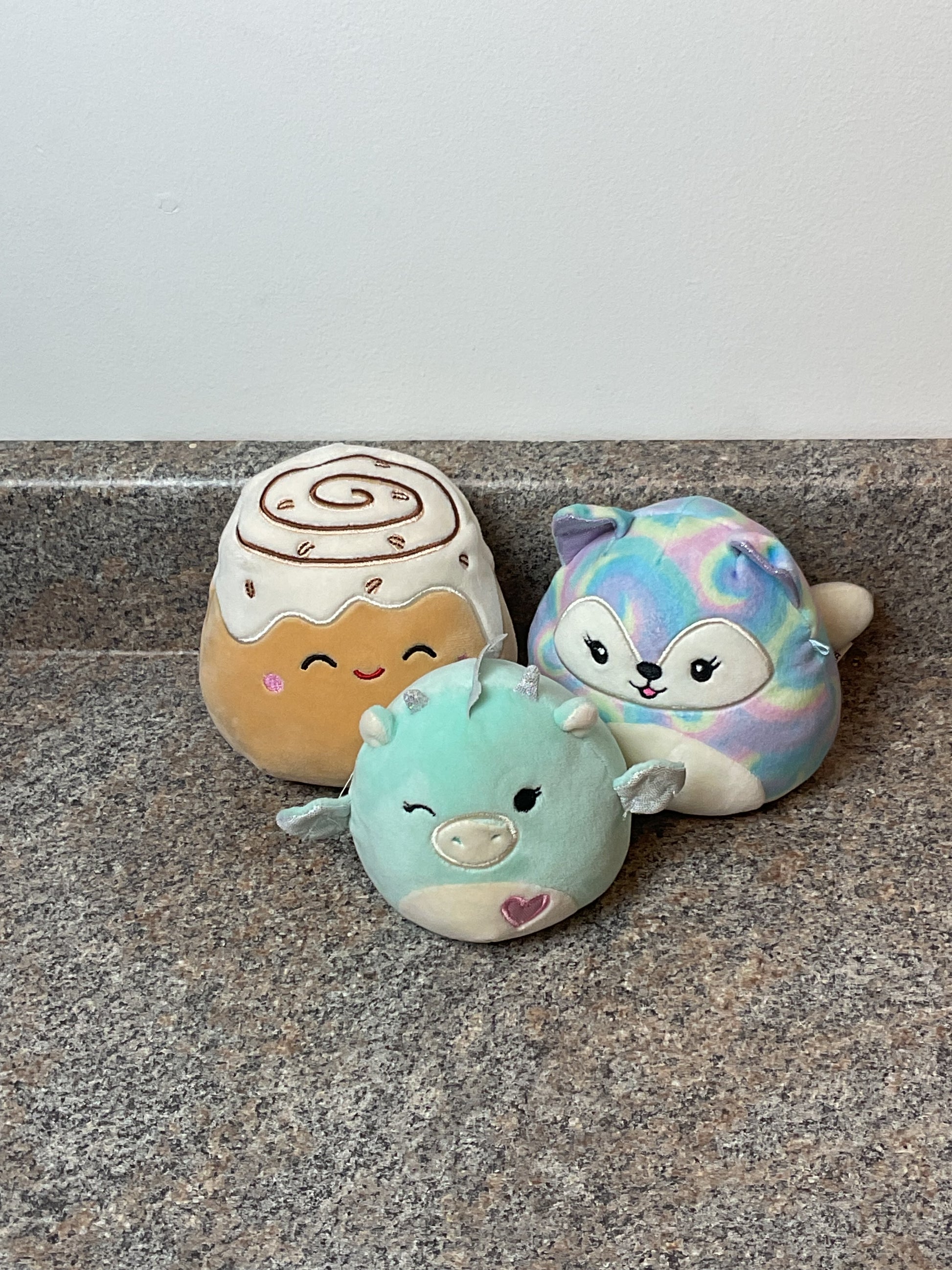 This 3 pack contains 3 medium-sized squishmallows such as Palasha The Dragon, Felexine The Fox and Cinnamon Bun Roll. All in almost new condition.