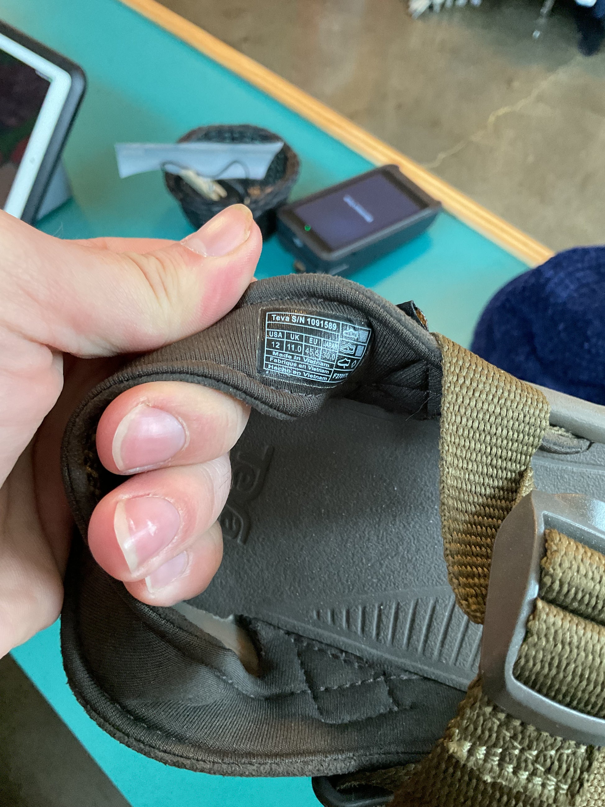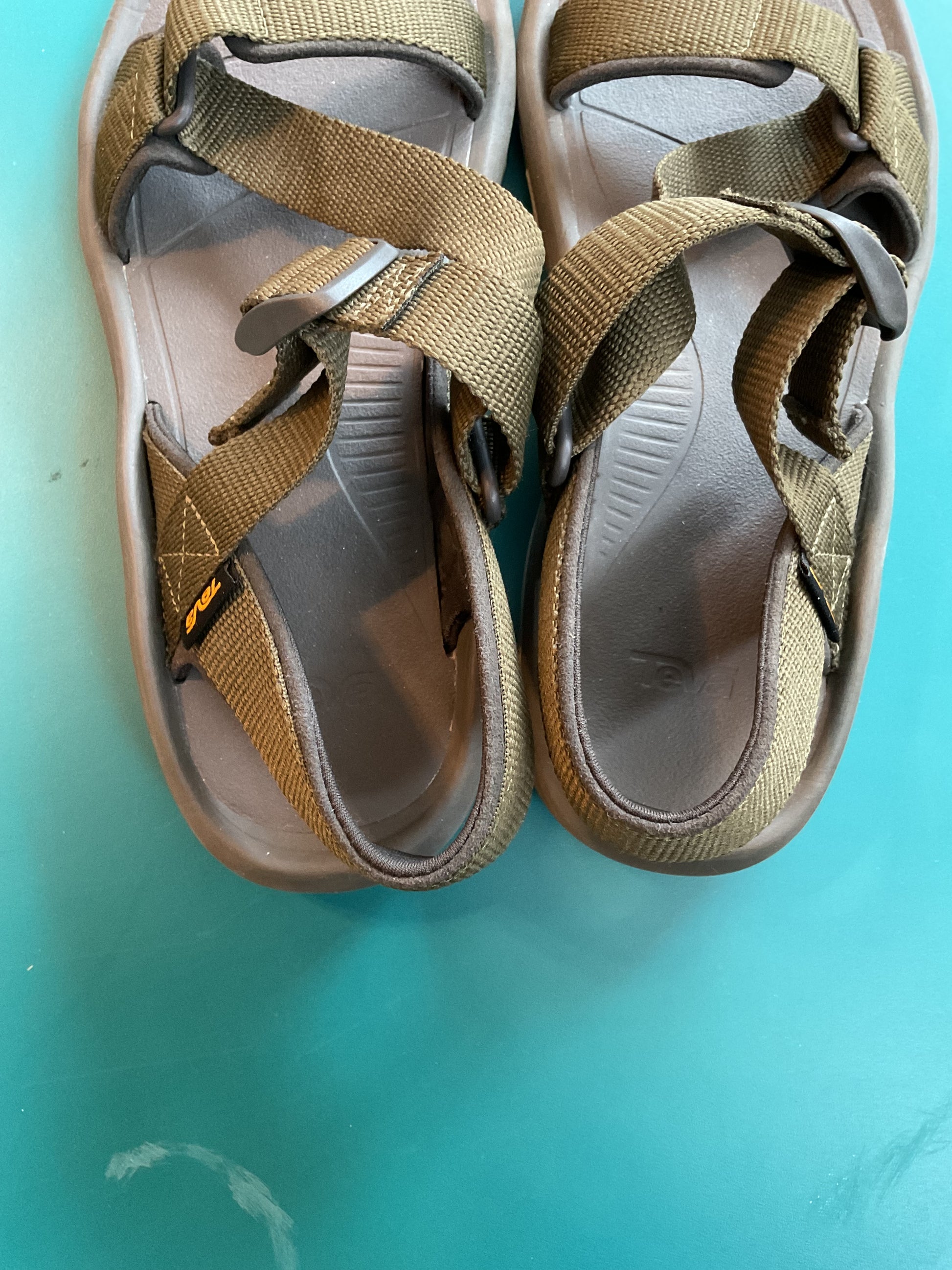 New Teva Sandals. Men’s size 12. Small stain on bottom of shoe near branding (pictured).
