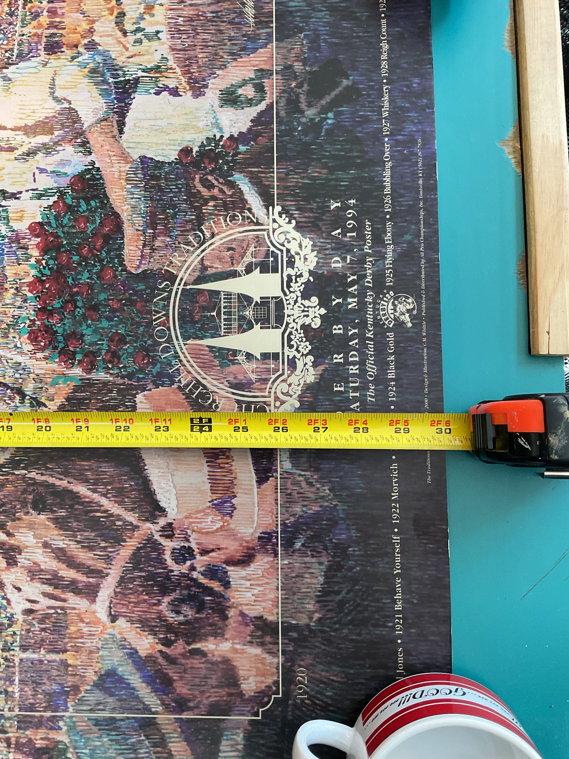 This poster was the official poster of the 120th running of the Kentucky Derby made in 1994. It is a beautiful design and it measures 30” tall by 24” wide.
