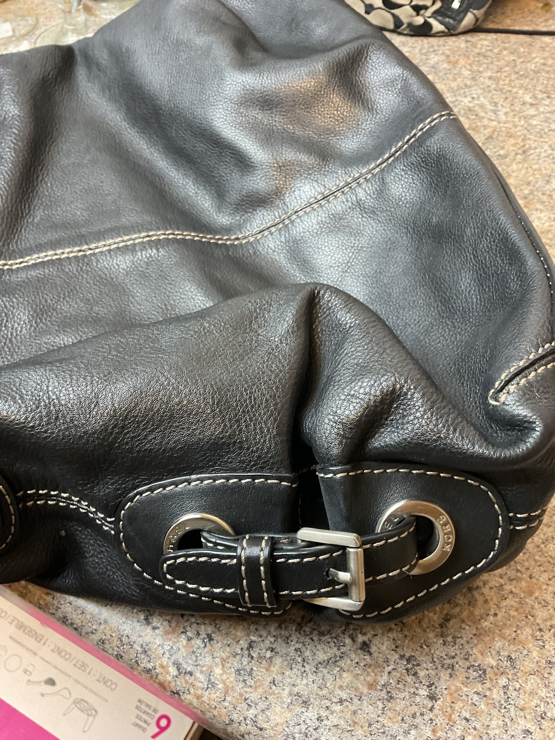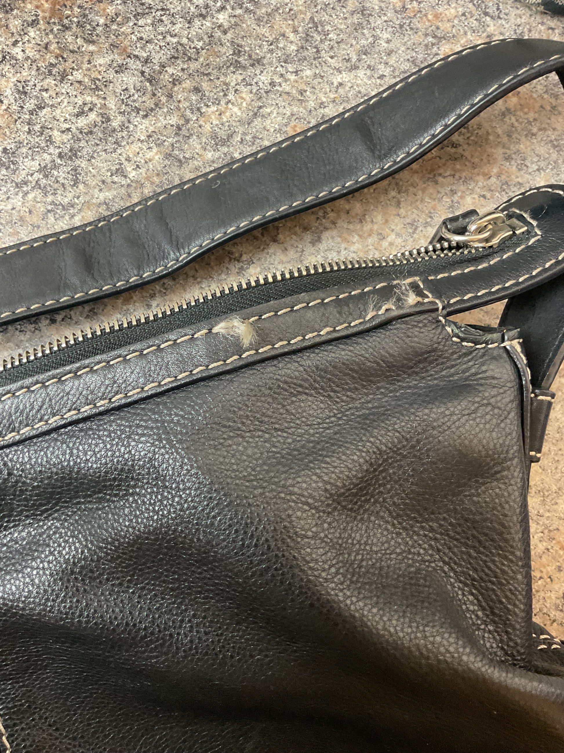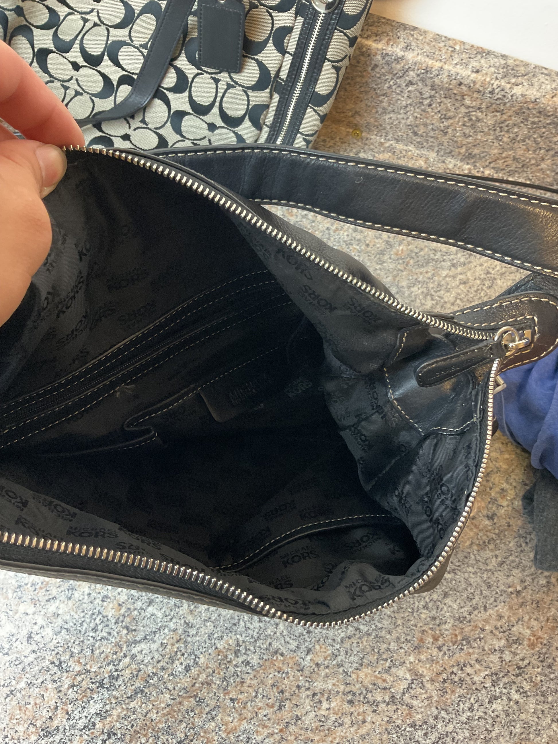 This Michael Kors bag is the perfect size for the person on the go. Able to fit snacks for the little ones, or an umbrella for those rainy day, this bag has you covered. There are a couple of strands that are frayed from the stitching (pictured).