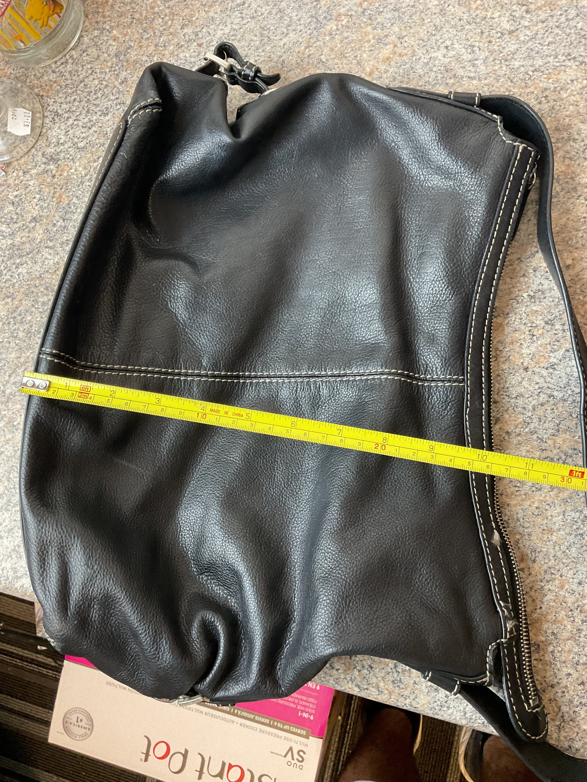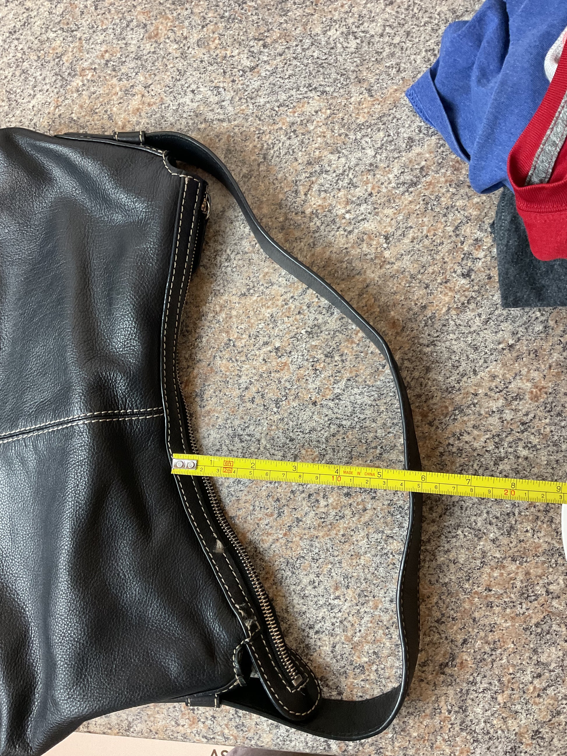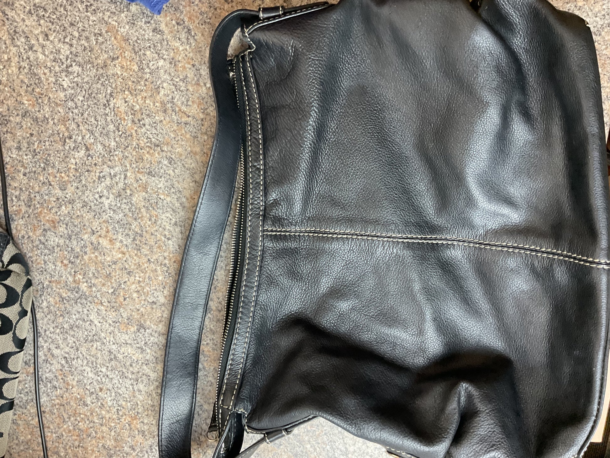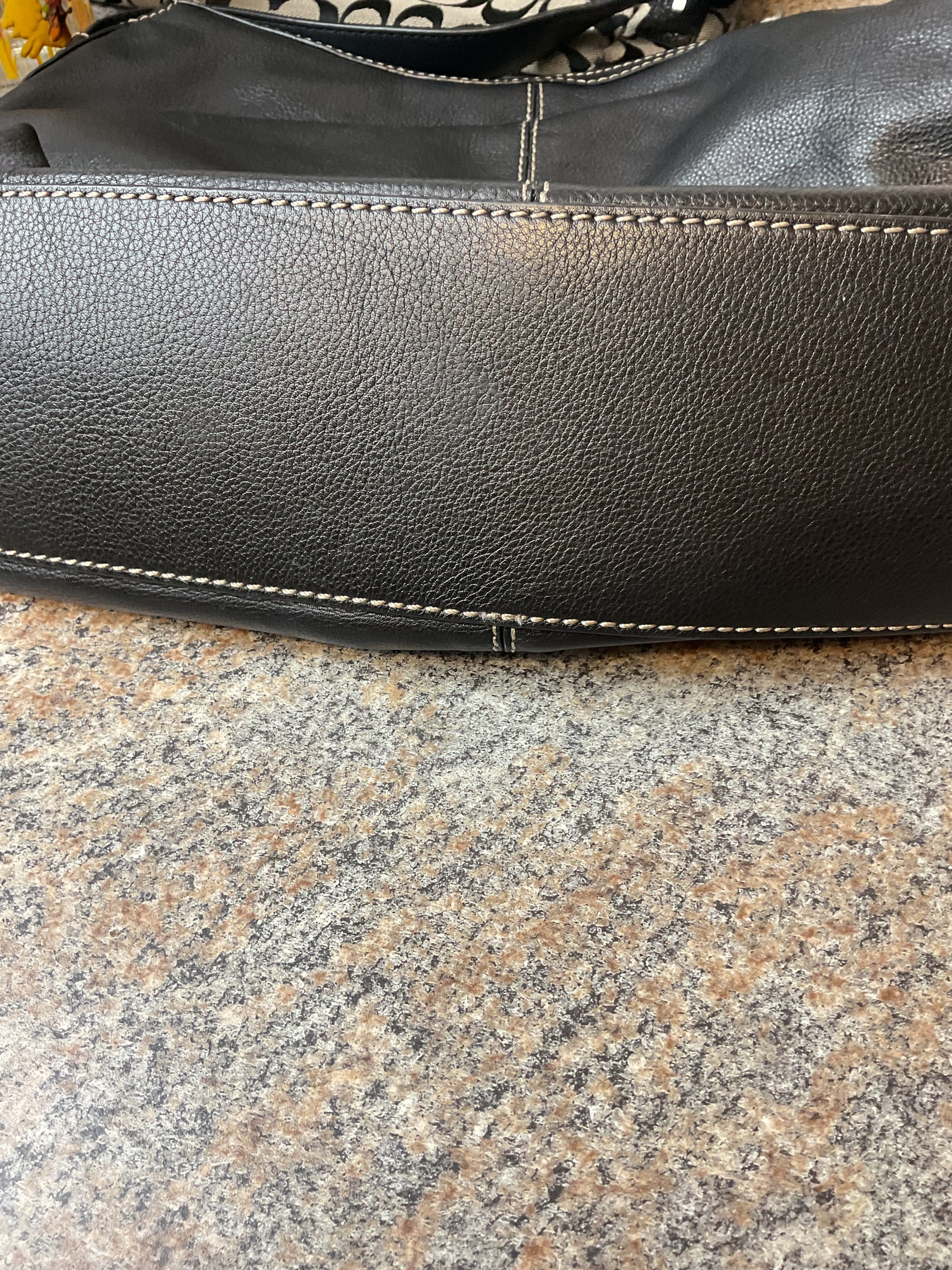 This Michael Kors bag is the perfect size for the person on the go. Able to fit snacks for the little ones, or an umbrella for those rainy day, this bag has you covered. There are a couple of strands that are frayed from the stitching (pictured).