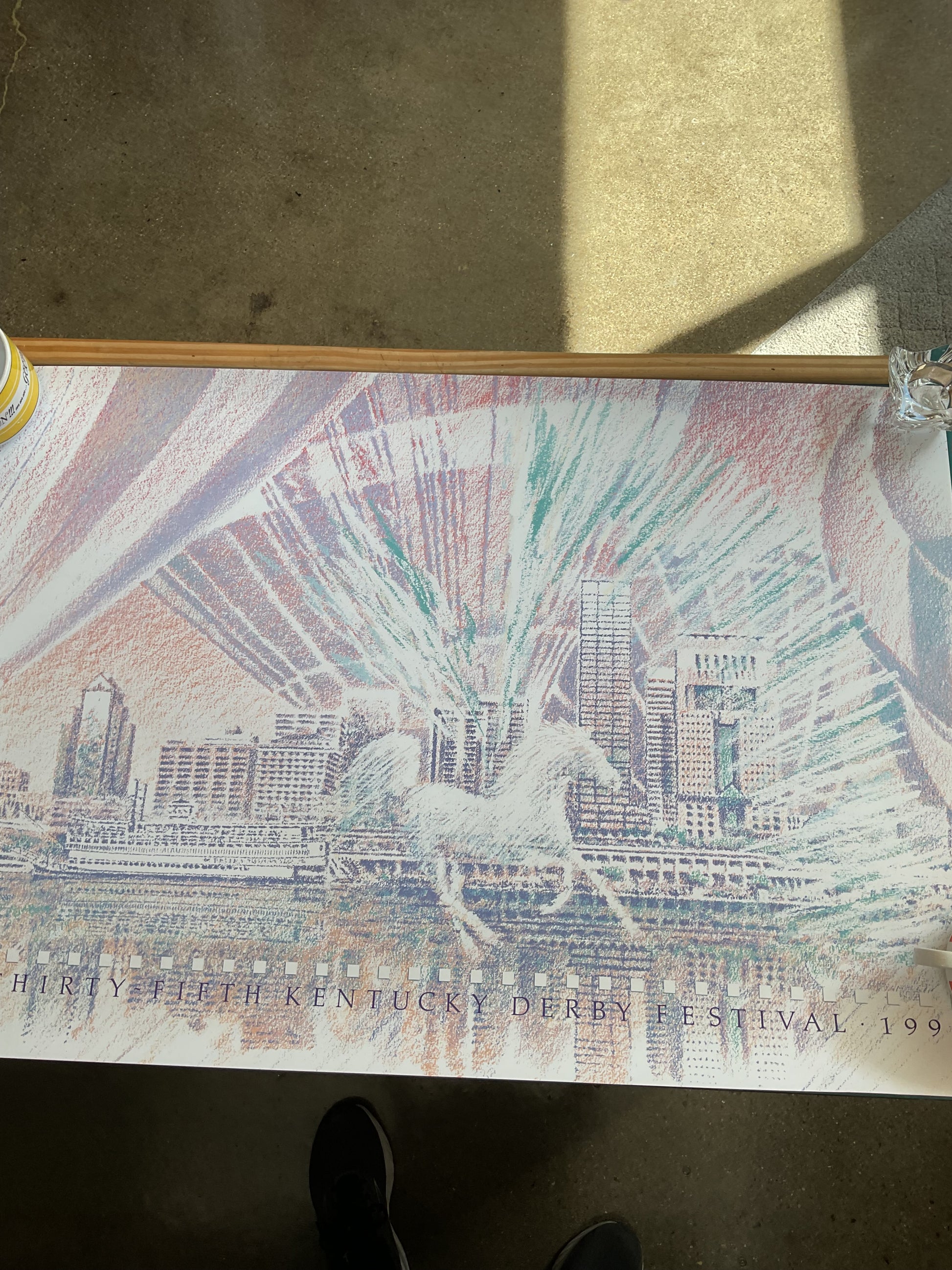This poster commemorates the Thirty-Fifth Kentucky Derby Festival in 1990. It measures 36” W by 24” Tall. It is a great image for anyone looking for Louisville themed decor.