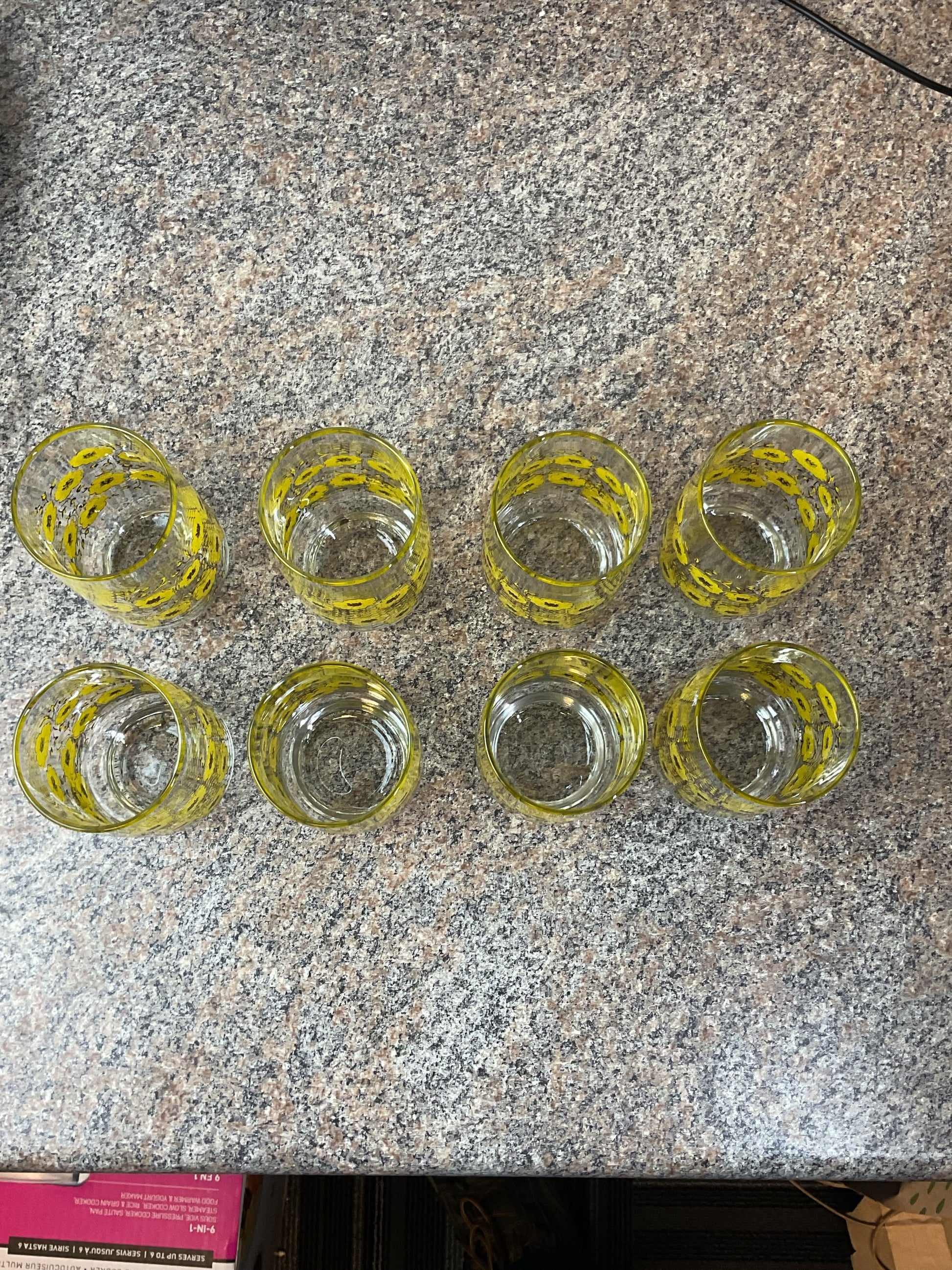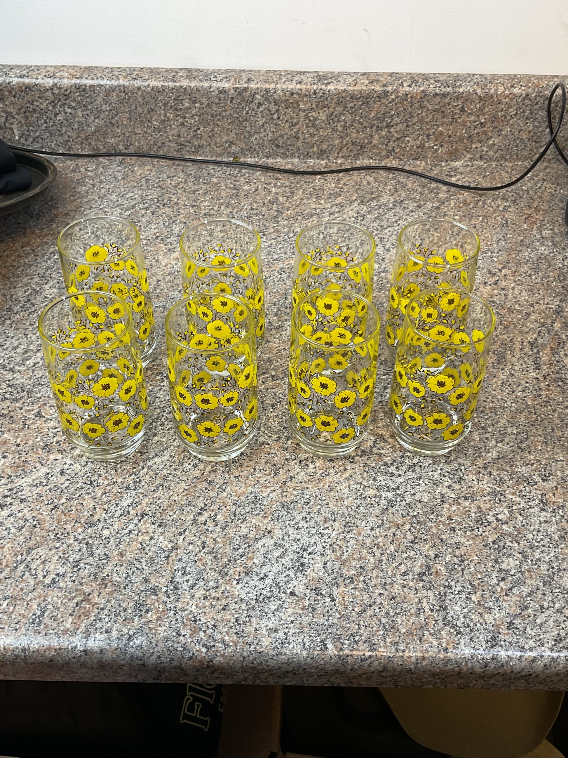 Beautiful vintage yellow sunflower floral glasses, set of 8. Perfect for any occasion, or just to add to your collection!