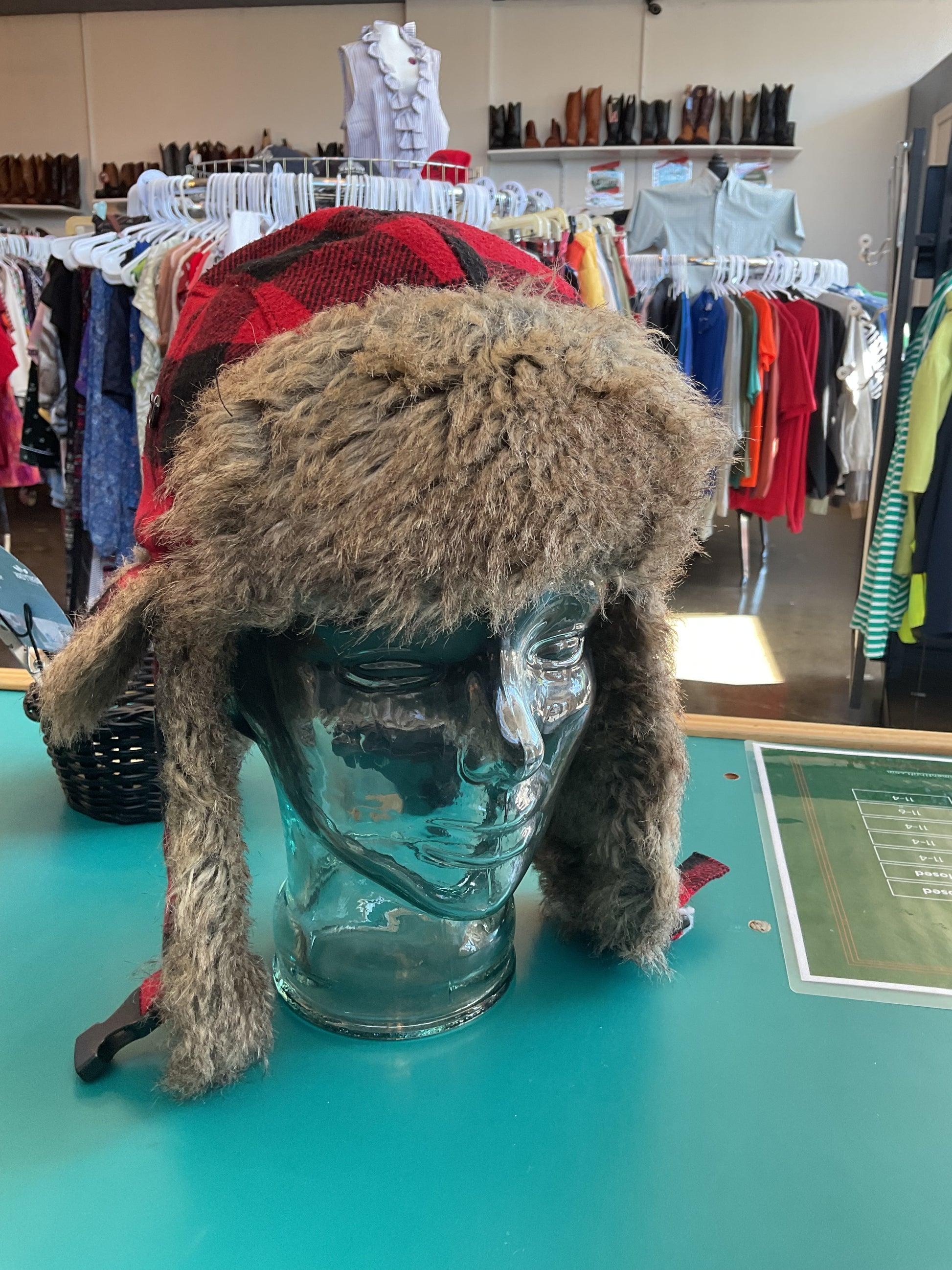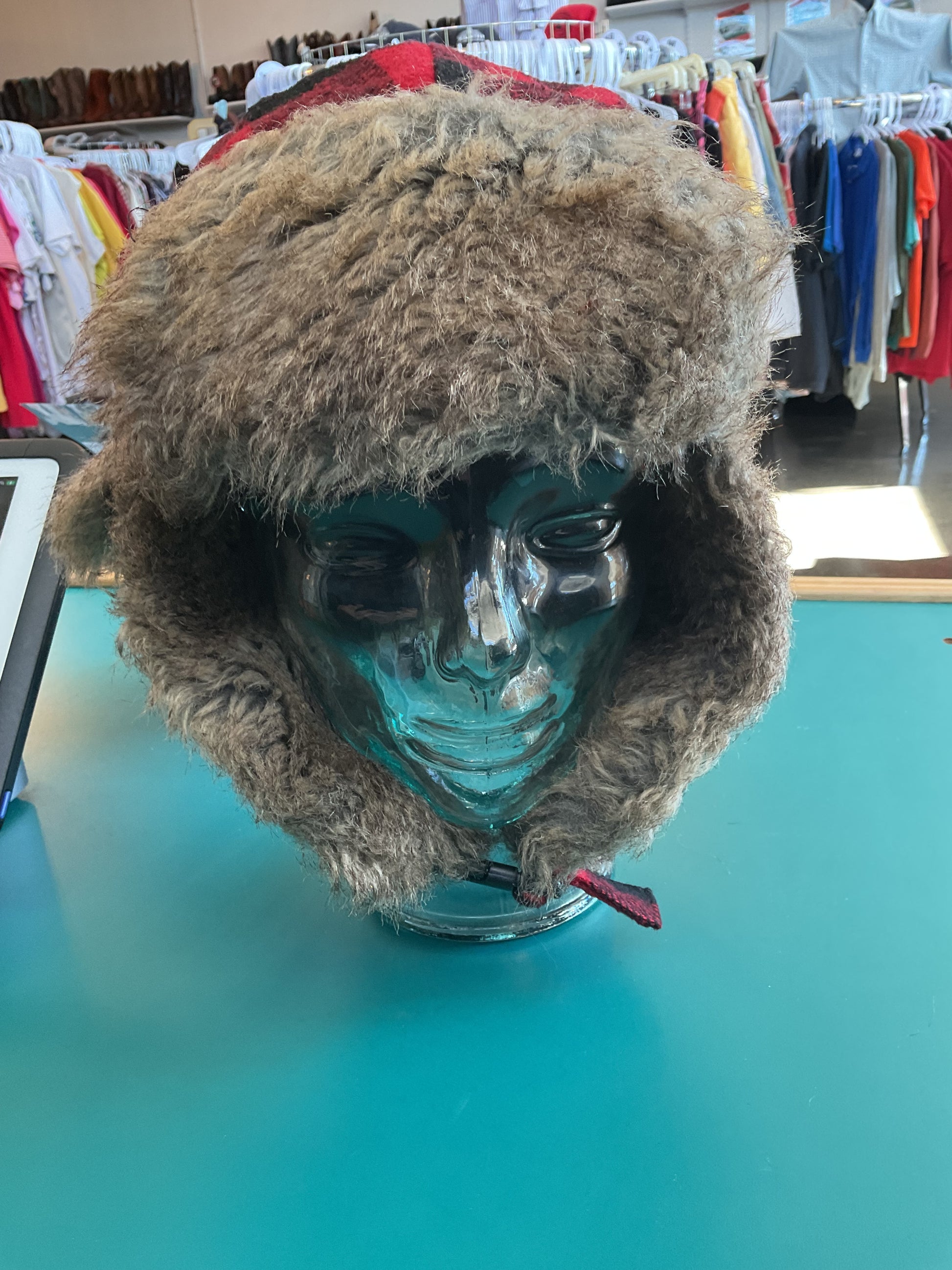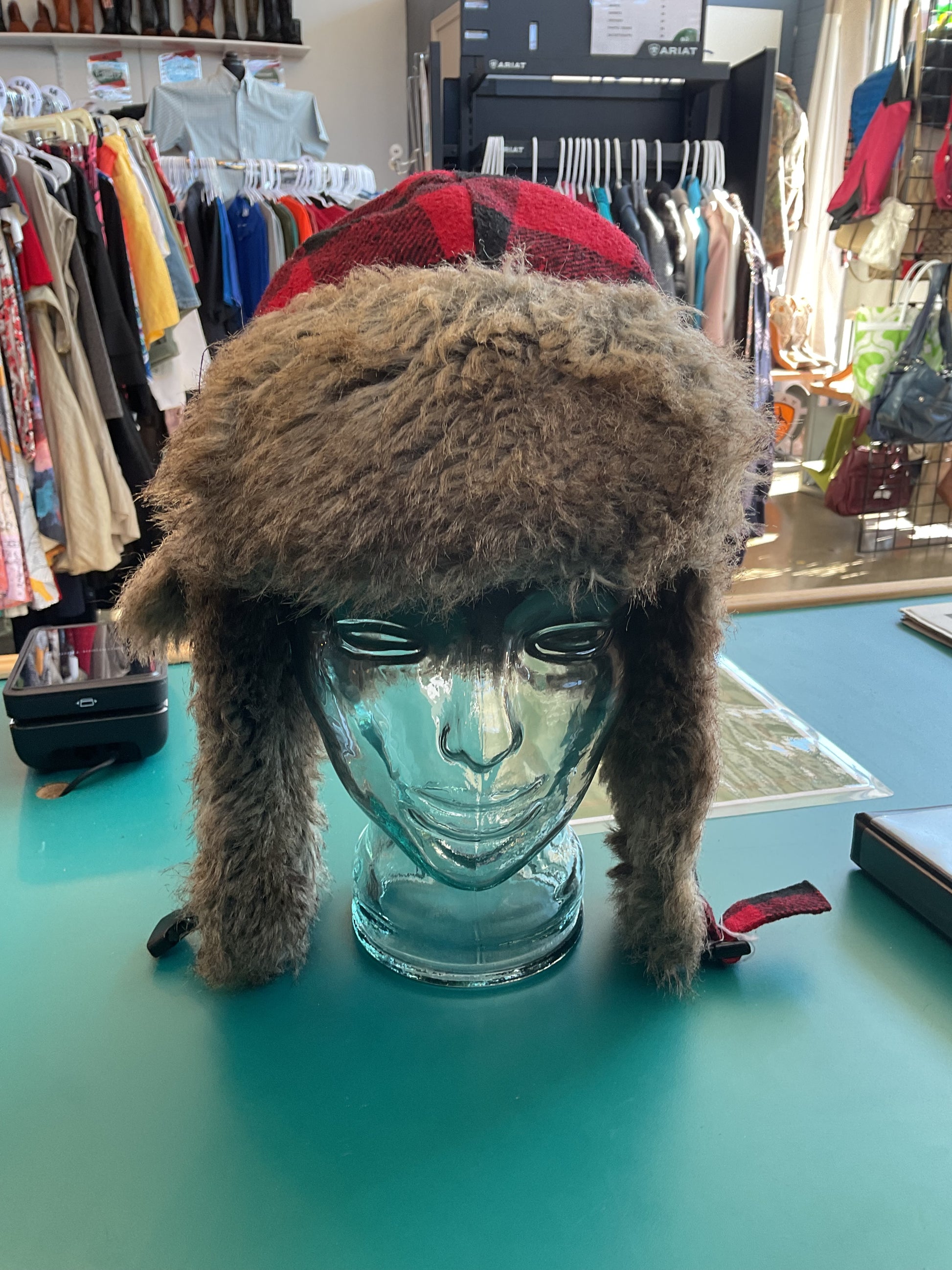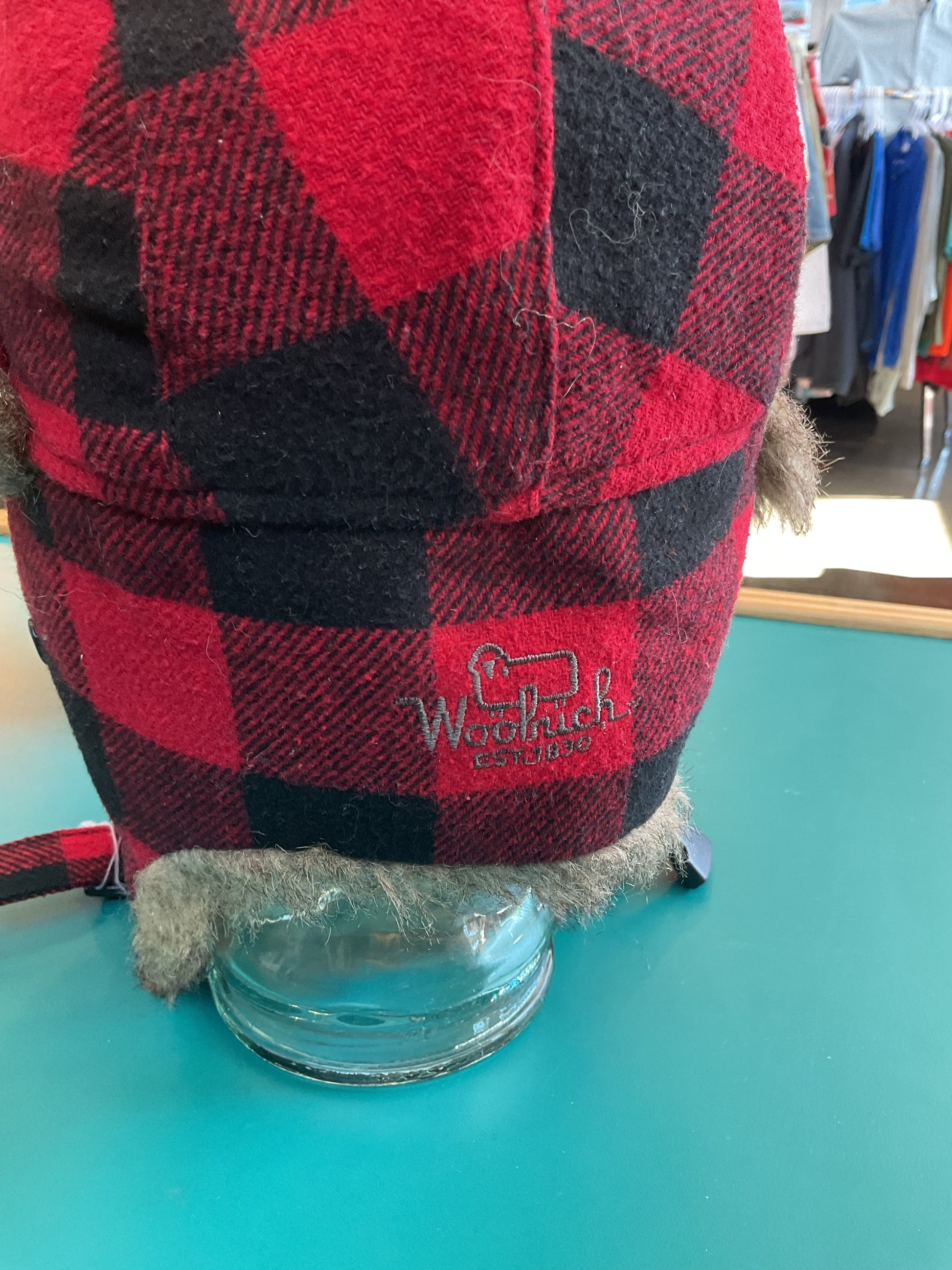 This authentic Woolrich hat is sure to keep your warm and stylish. The red/black plaid design is a classic, and the ear flaps and fur lining are sure to keep you warm on those cold winter days. Whether you need it for the practicality or the style, Woolrich is the brand you want on your head. Get yours now! Size Small/Medium.
