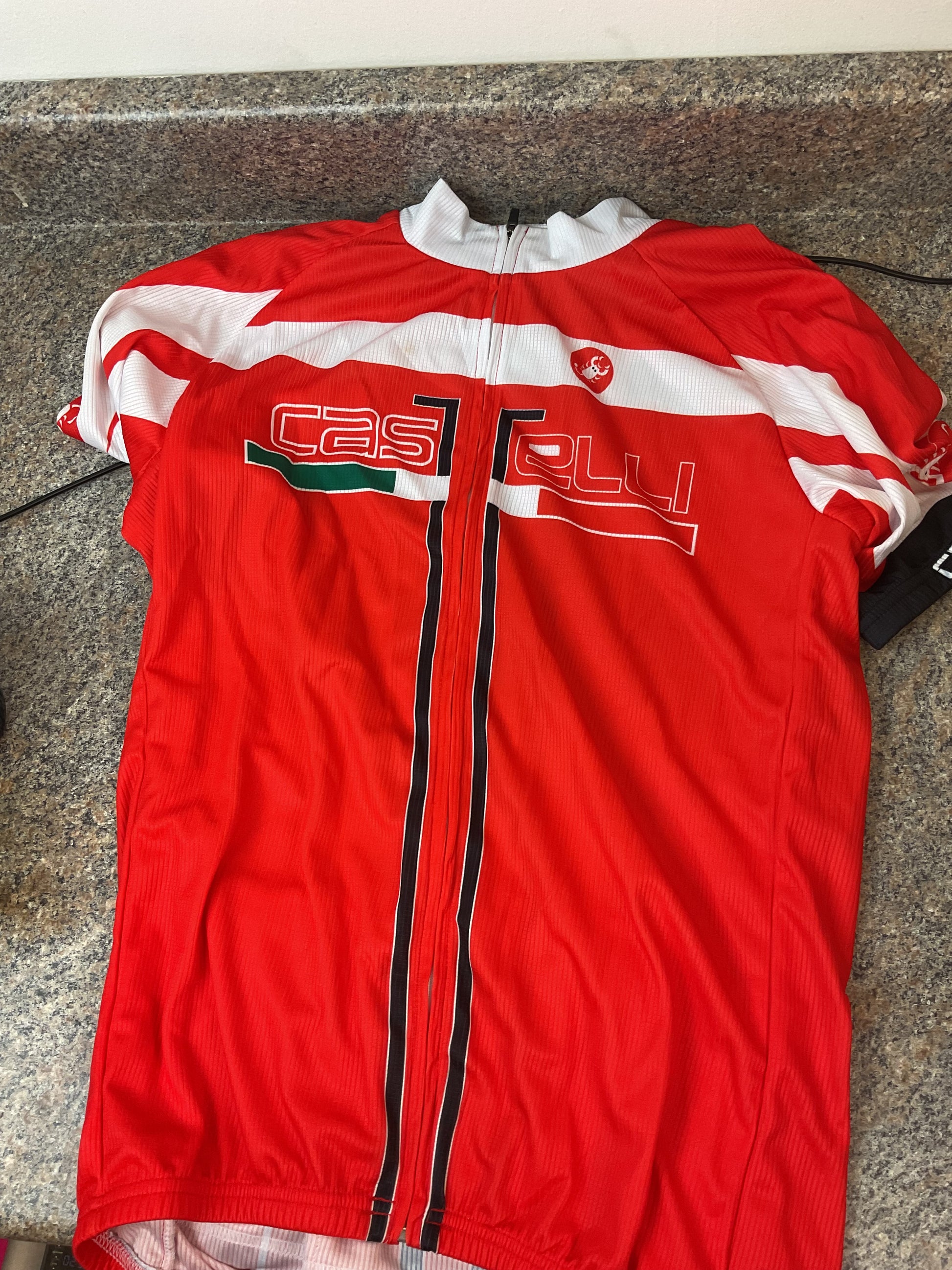 Xl 2011 Team Castelli Road Bike Wear Riding Full-Zip Jersey Short Sleeve Top Shirt Maillot Cyclist Red, includes pockets on back for water bottles. The best shirt for biking!